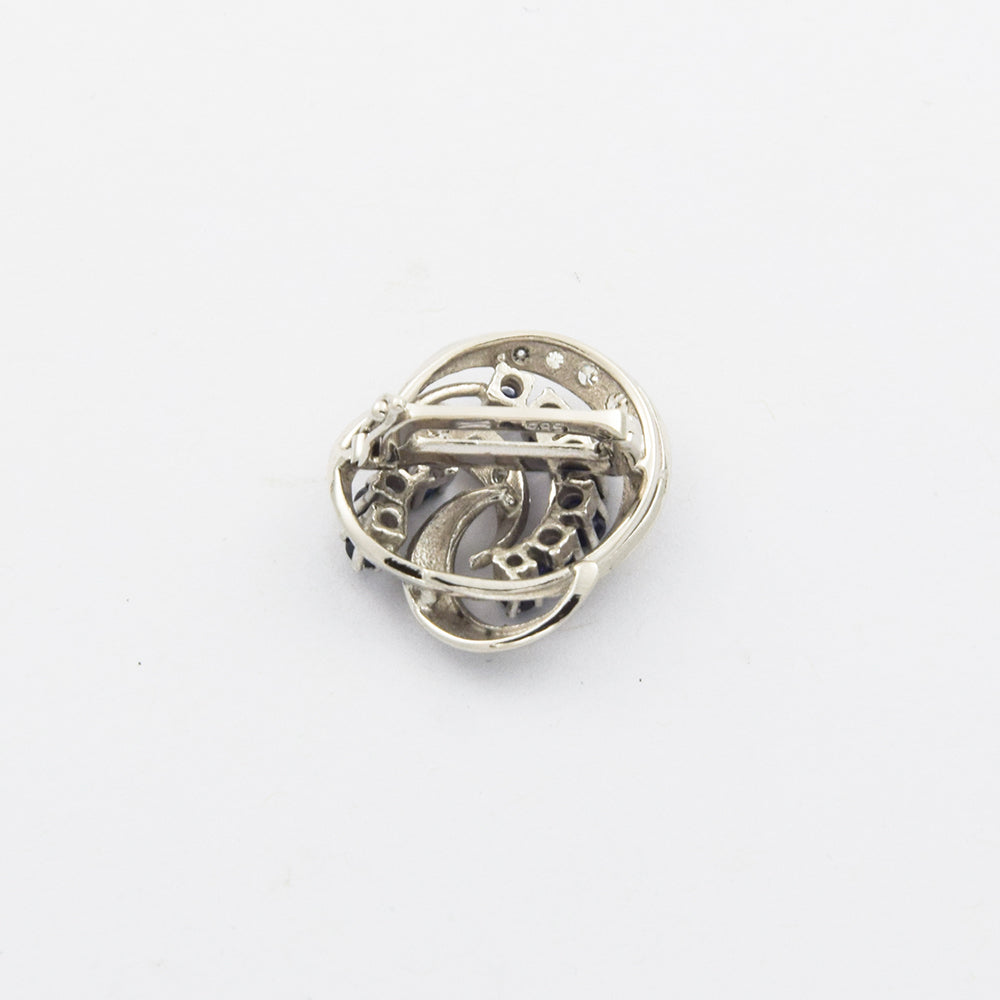 Bei dem Schmuckstück handelt es sich um einen Perlenkettenverkürzer aus 585 Weißgold mit neun Saphiren, neun Diamanten im 8/8 Schliff von zusammen ca. 0,135 ct in der Qualität Weiß und piqué 1 (W/p 1) und fünf Brillanten von zusammen ca. 0,15 ct in der Qualität Weiß und piqué 1 (W/p 1).