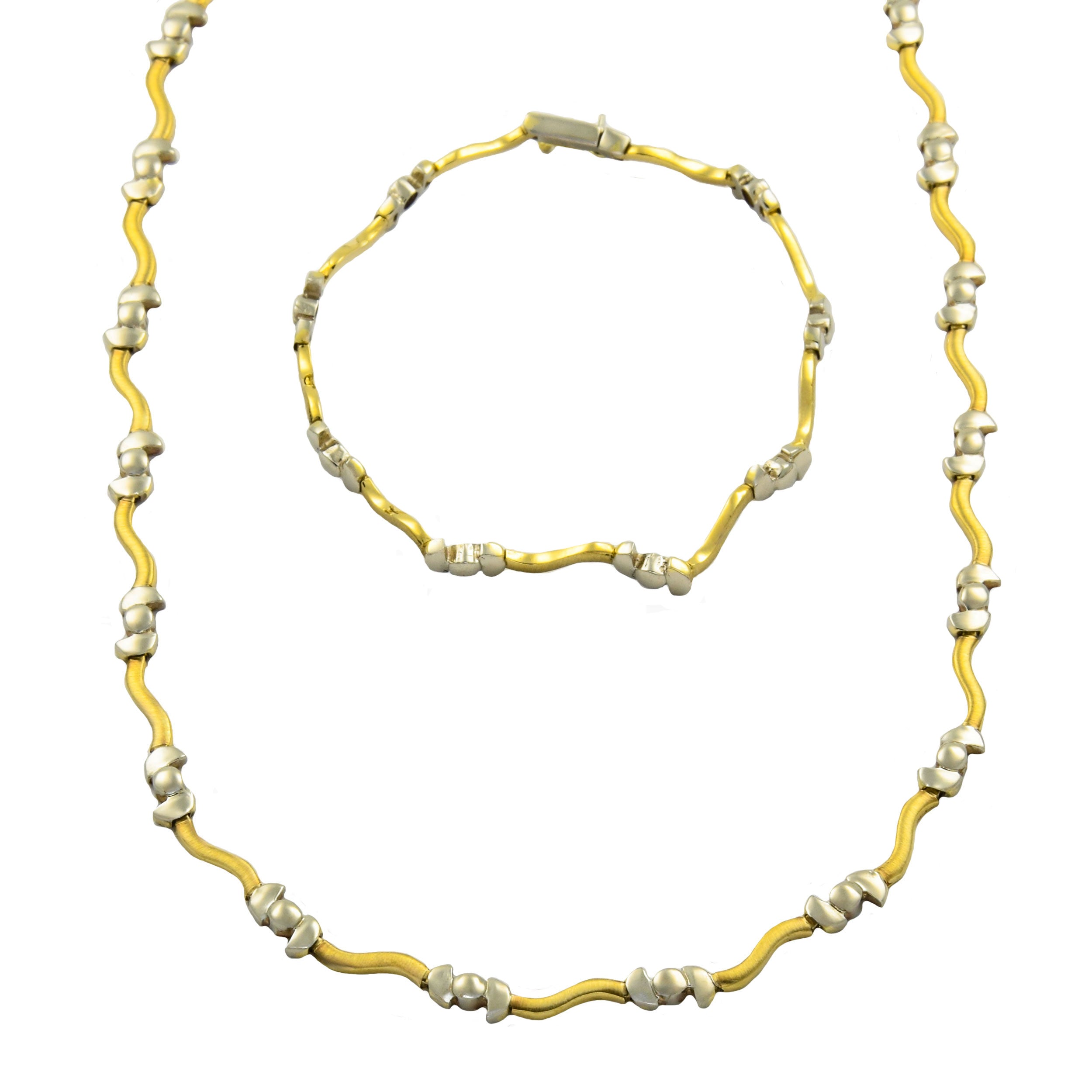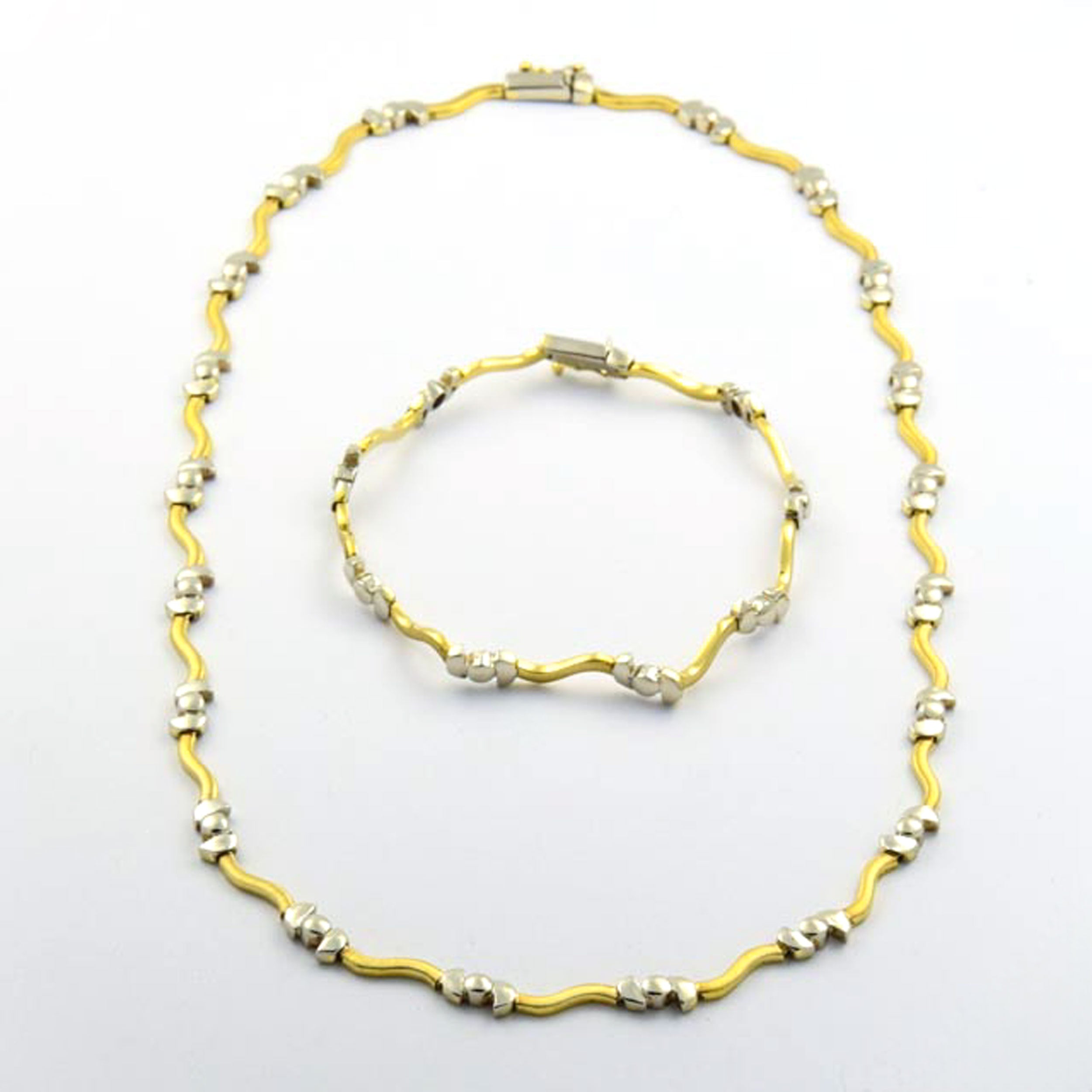 Set aus Halskette und Armband aus Gelb- und Weißgold