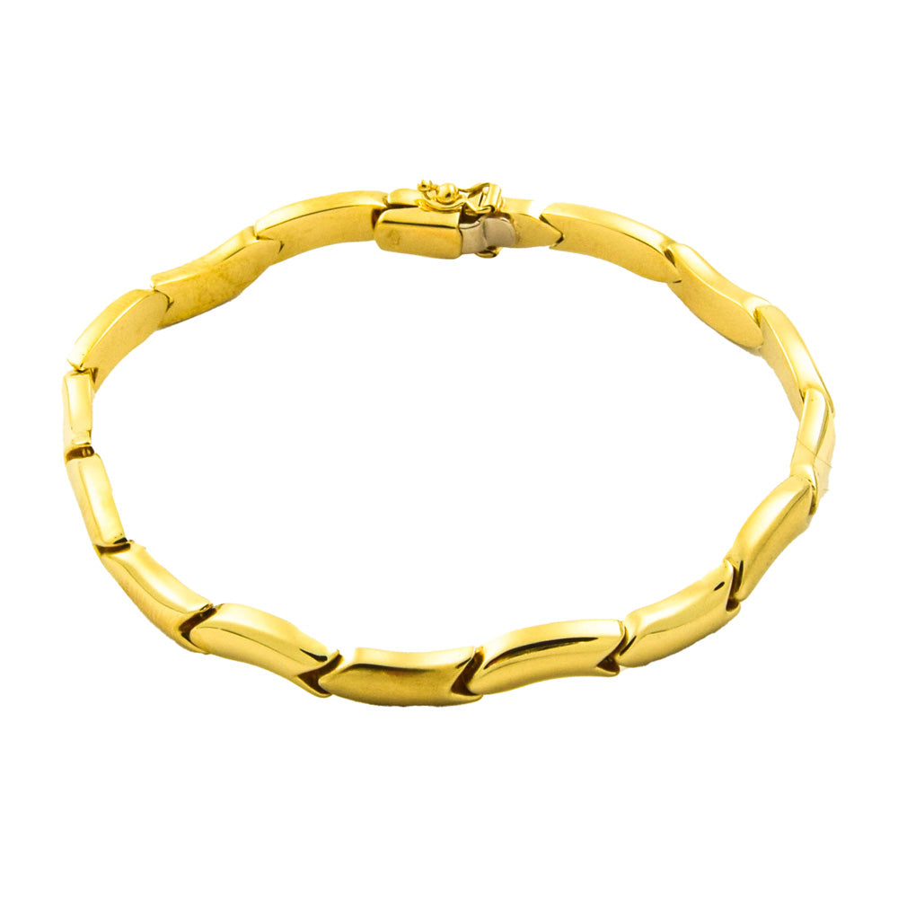 Bei dem Schmuckstück handelt es sich um ein Armband aus 585 Gelbgold. Das Schmuckstück hat eine Gesamtlänge von 19 cm.
