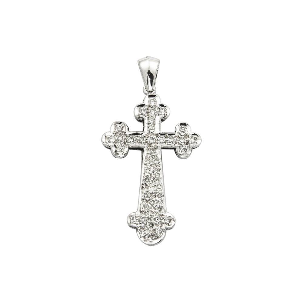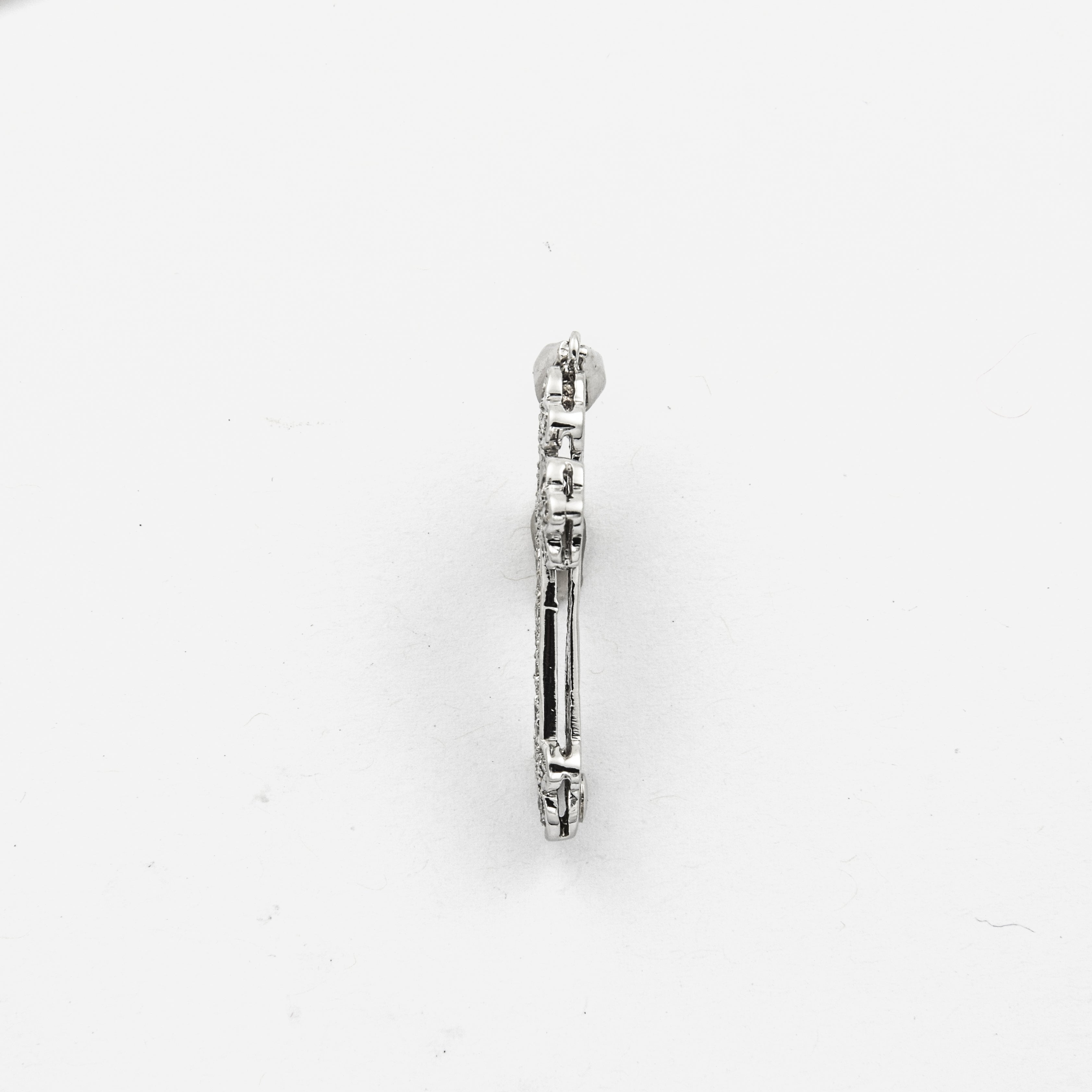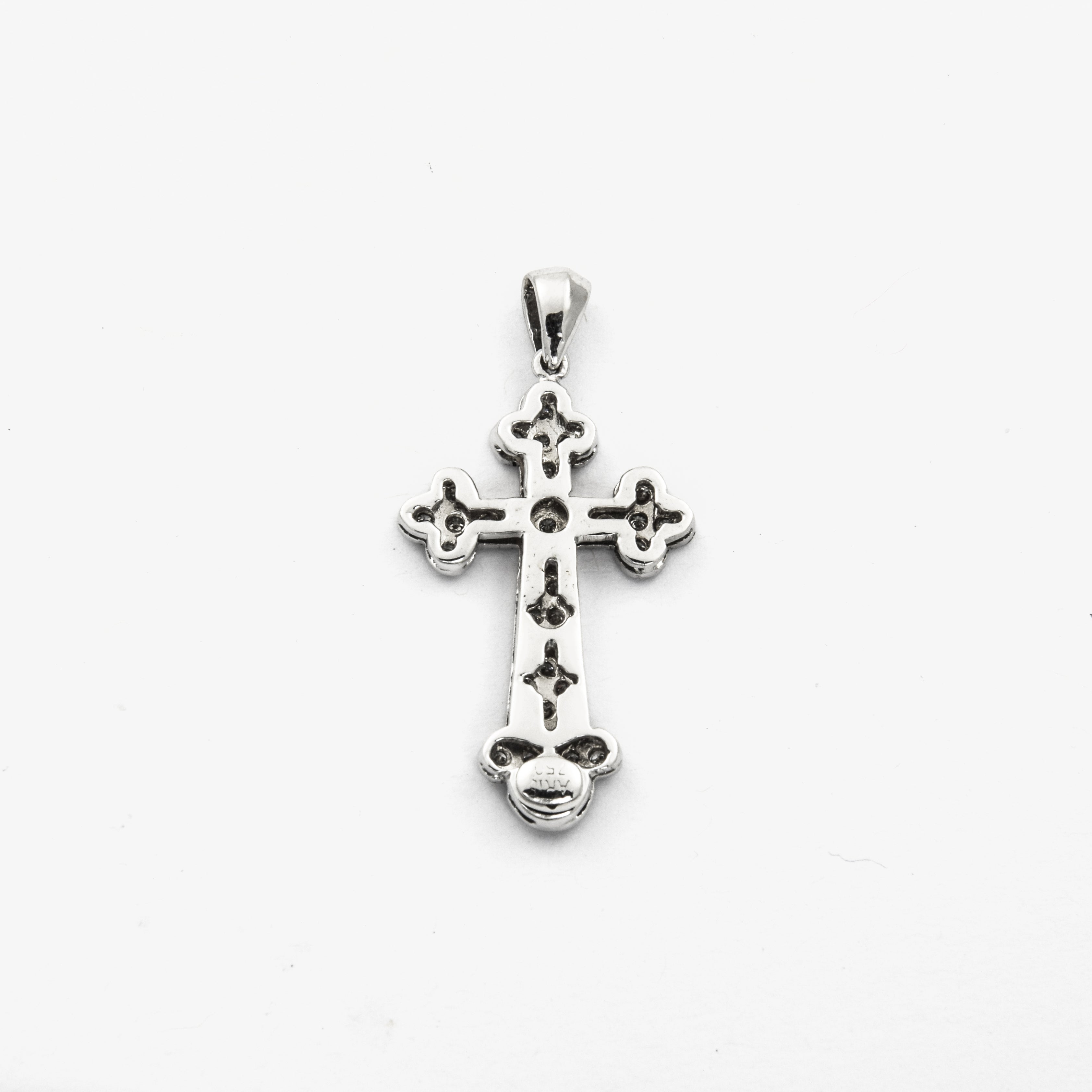 Bei dem Schmuckstück handelt es sich um einen Kreuzanhänger aus 750 Weißgold mit 41 Brillanten von zusammen ca. 0,61 ct in der Qualität Weiß mit kleinen Einschlüssen (W/si).