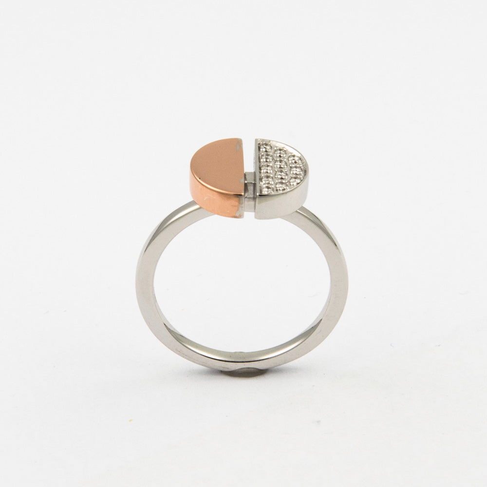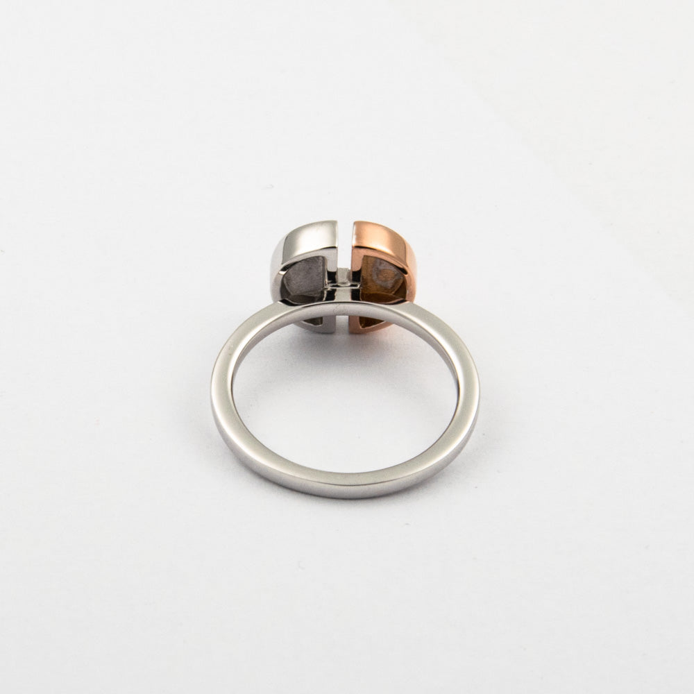 Bei dem Schmuckstück handelt es sich um einen Ring aus 585 Weiß- und Roségold mit zwölf Brillanten von zusammen ca. 0,07 ct in der Qualität Weiß mit kleinen Einschlüssen (W/si).