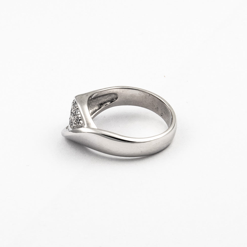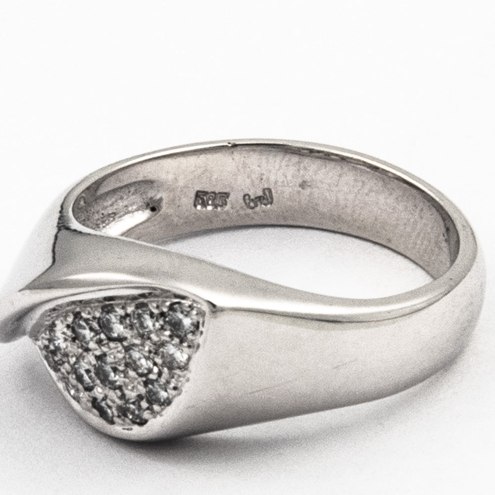 Bei dem Schmuckstück handelt es sich um einen Ring aus 585 Weißgold mit 14 Brillanten von zusammen ca. 0,14 ct in der Qualität Weiß mit sehr kleinen Einschlüssen (W/vs).
