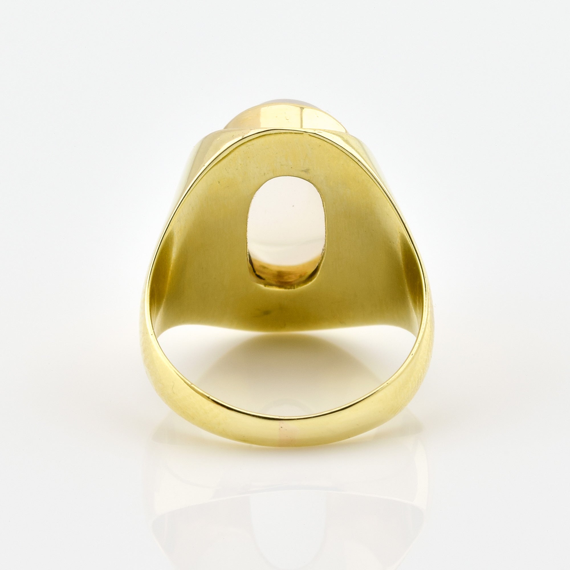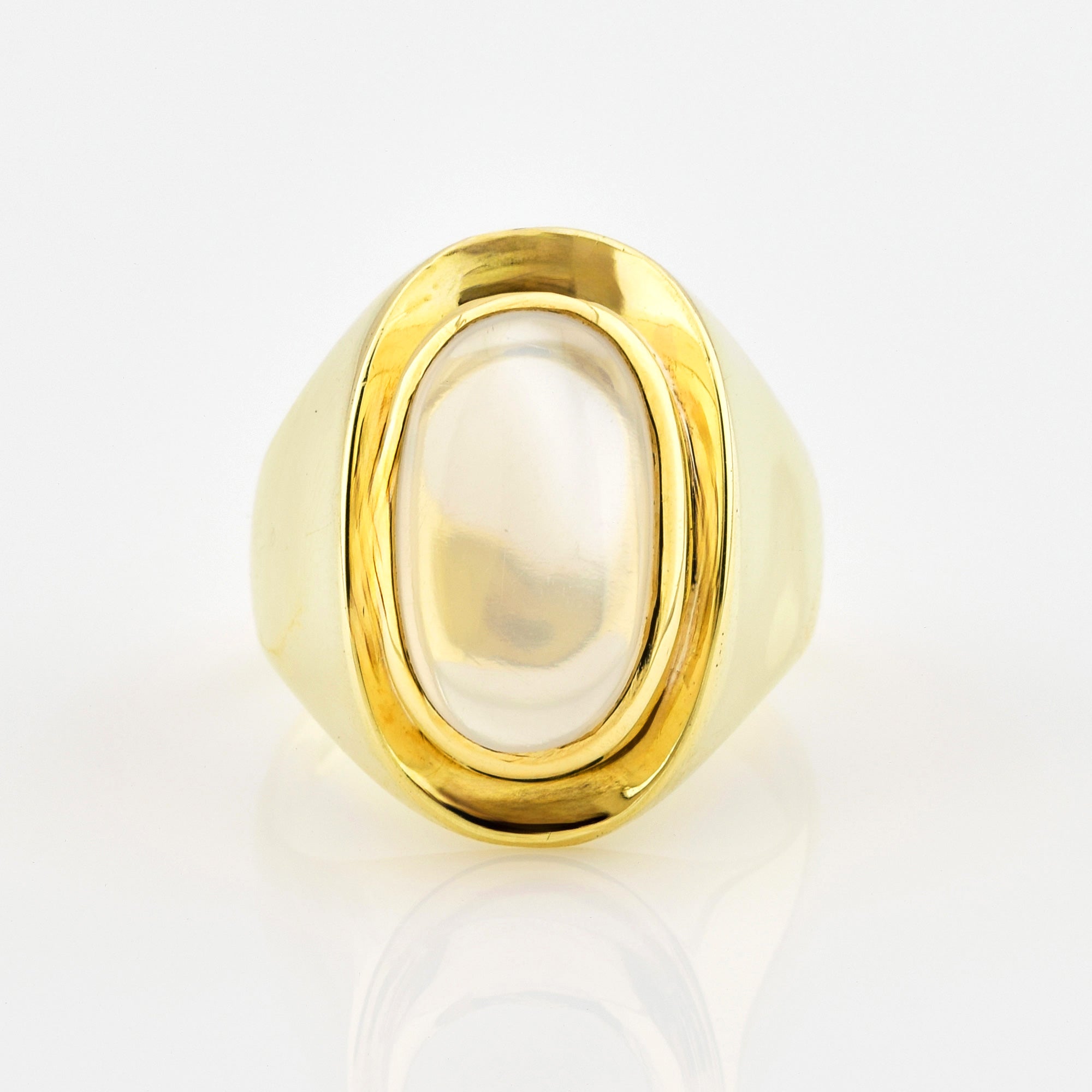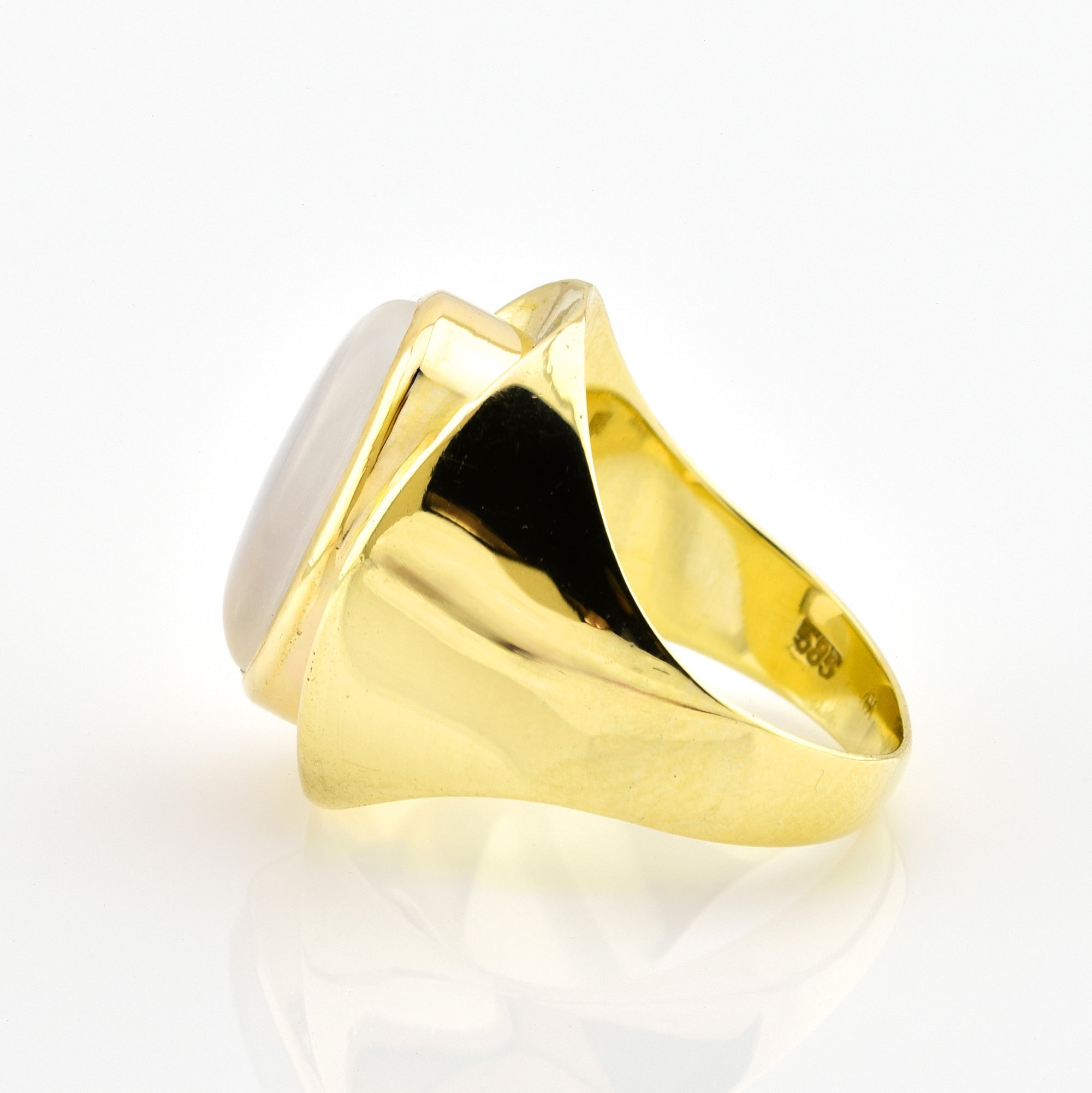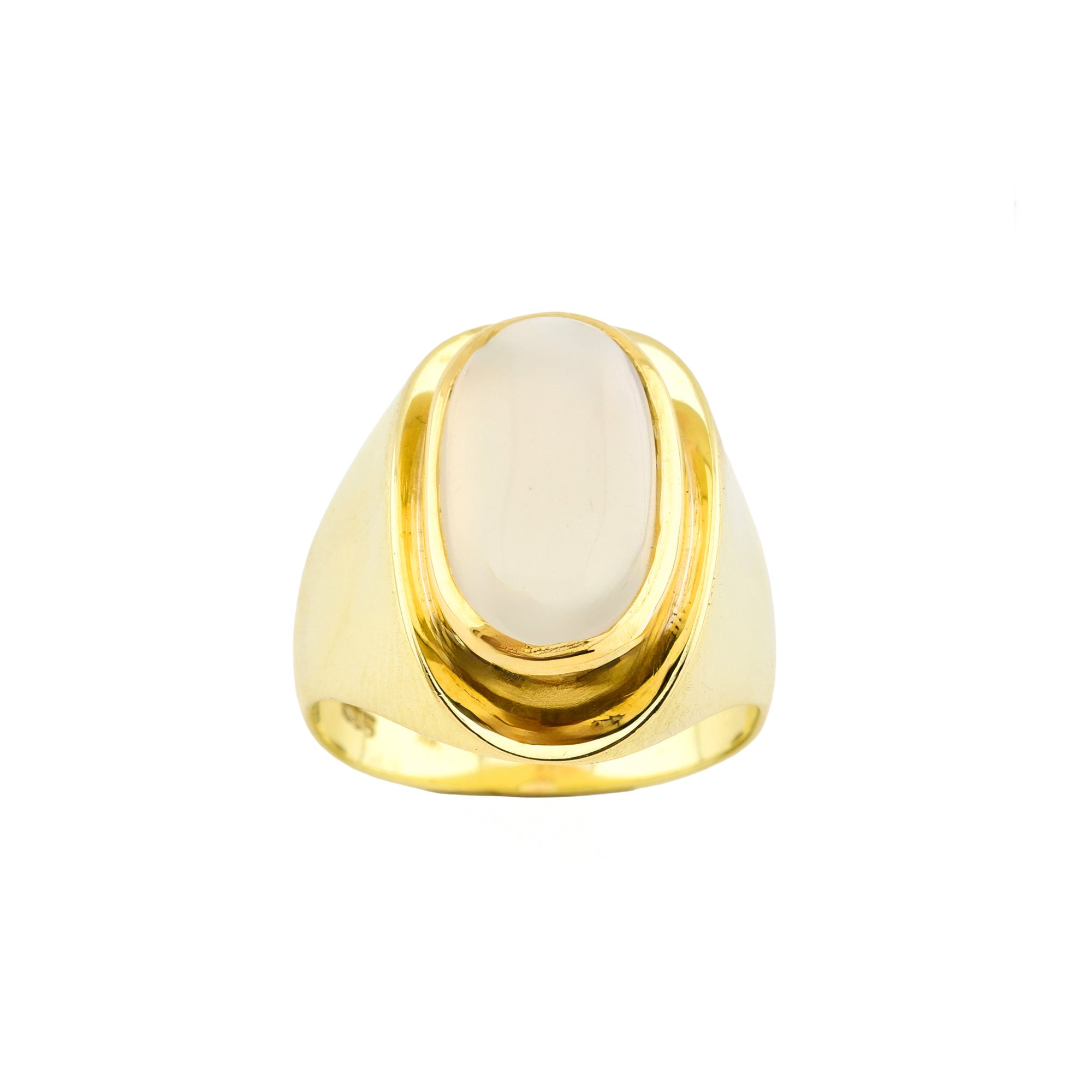 Bei dem Schmuckstück handelt es sich um einen Ring aus 585 Gelbgold mit einem Mondstein.