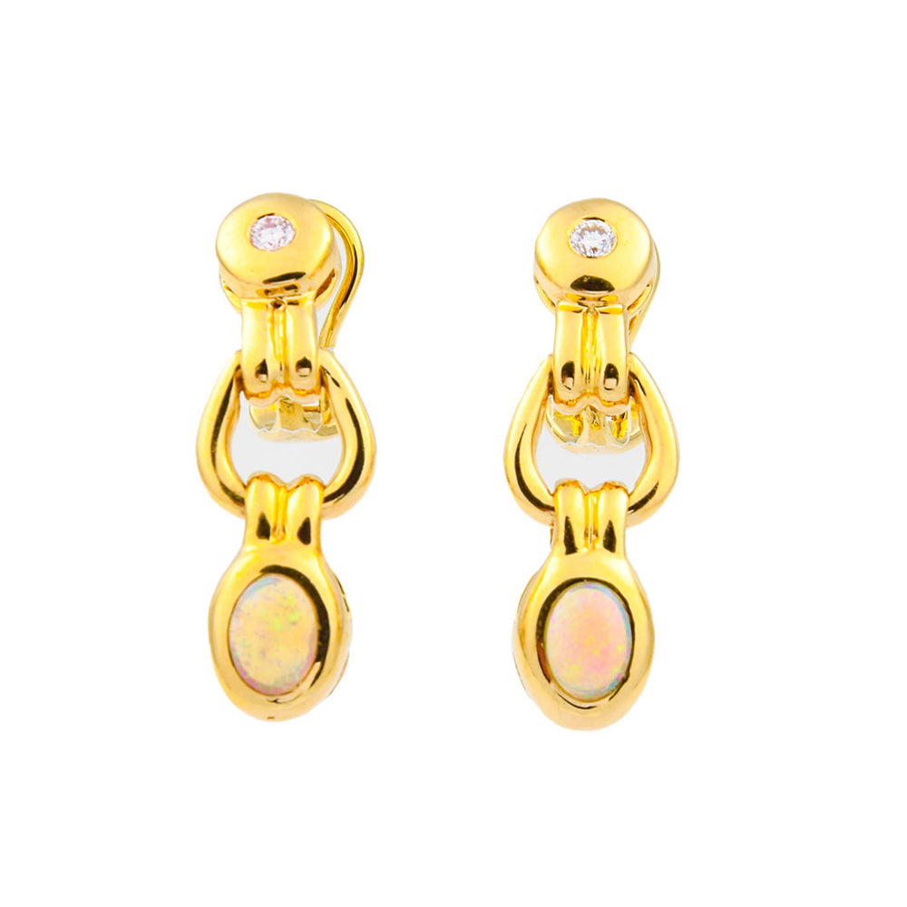 Ohrclips aus Gelbgold mit Opal und Diamant