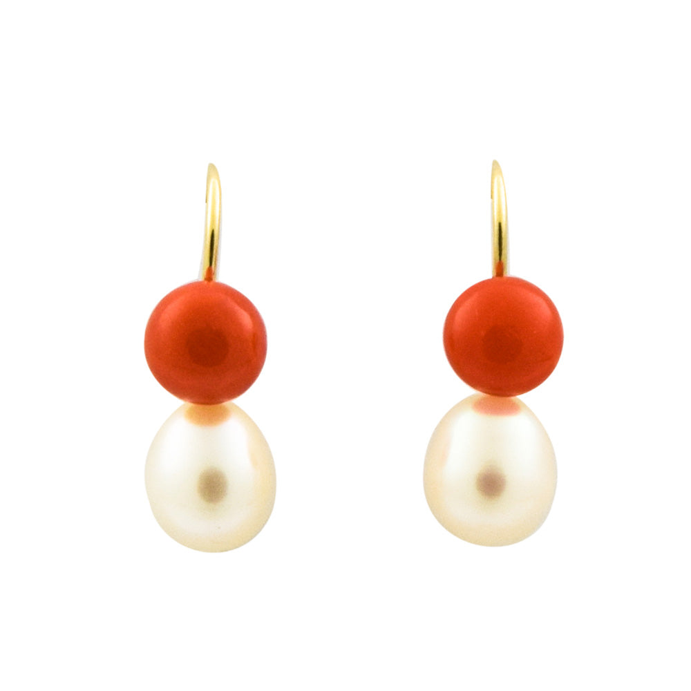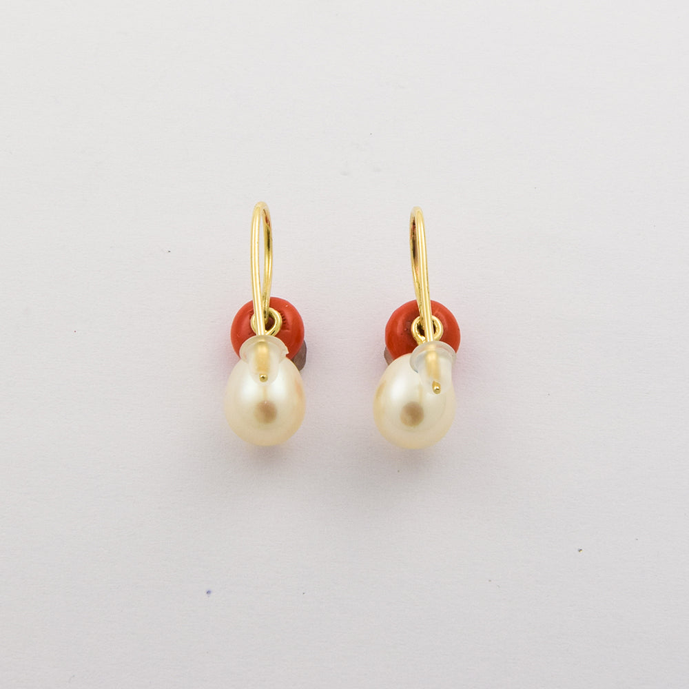Korallenohrhänger aus Gelbgold mit Perle
