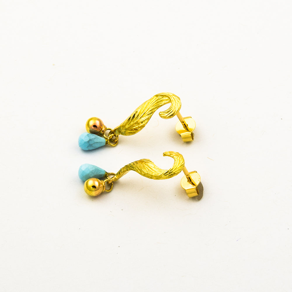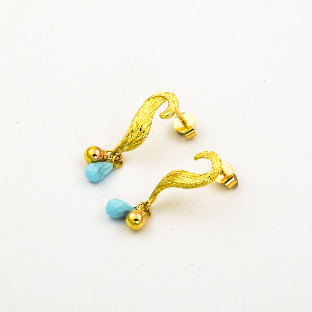 Ohrhänger aus Gelbgold mit Türkis, neuwertig