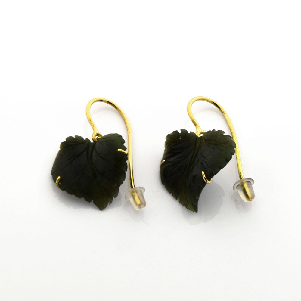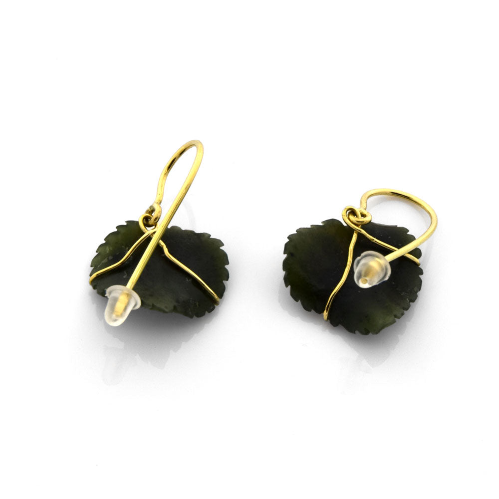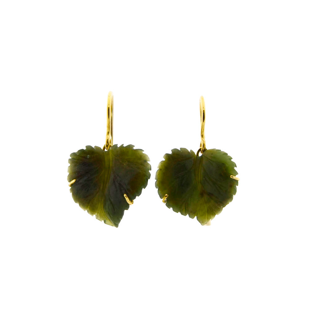Bei dem Schmuckstück handelt es sich um ein Paar neuwertige Ohrhänger "Blätter" aus 750 Gelbgold mit zwei Jade.