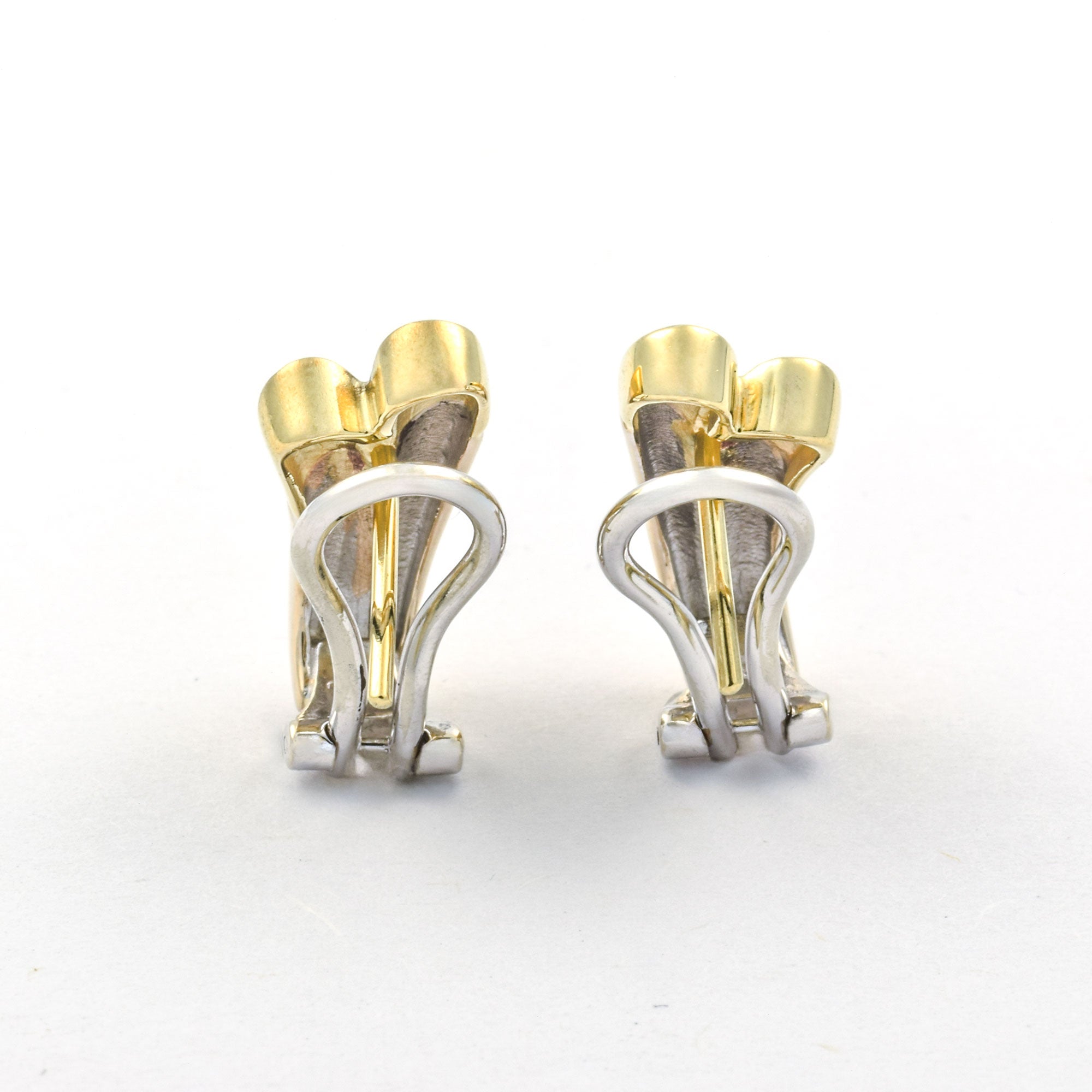Bei dem Schmuckstück handelt es sich um ein Paar Ohrstecker mit Clipmechanik aus 585 Gelb- und Weißgold mit vier Brillanten von zusammen ca. 0,16 ct in der Qualität feines Weiß mit sehr kleinen Einschlüssen (TW/vs).