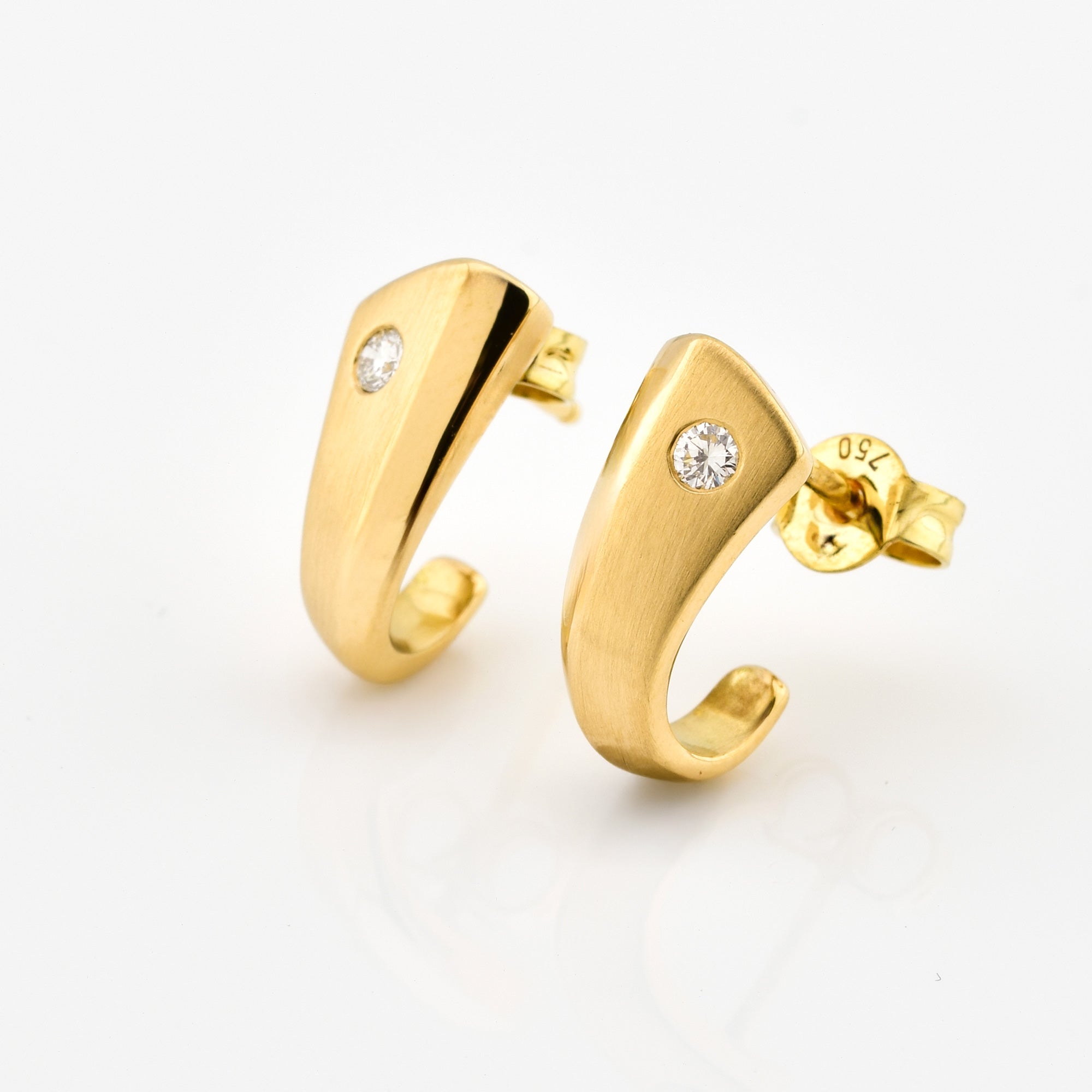 Bei dem Schmuckstück handelt es sich um ein Paar Ohrstecker aus 750 Gelbgold mit zwei Brillanten von zusammen ca. 0,1 ct in der Qualität Weiß mit kleinen Einschlüssen (W/si).