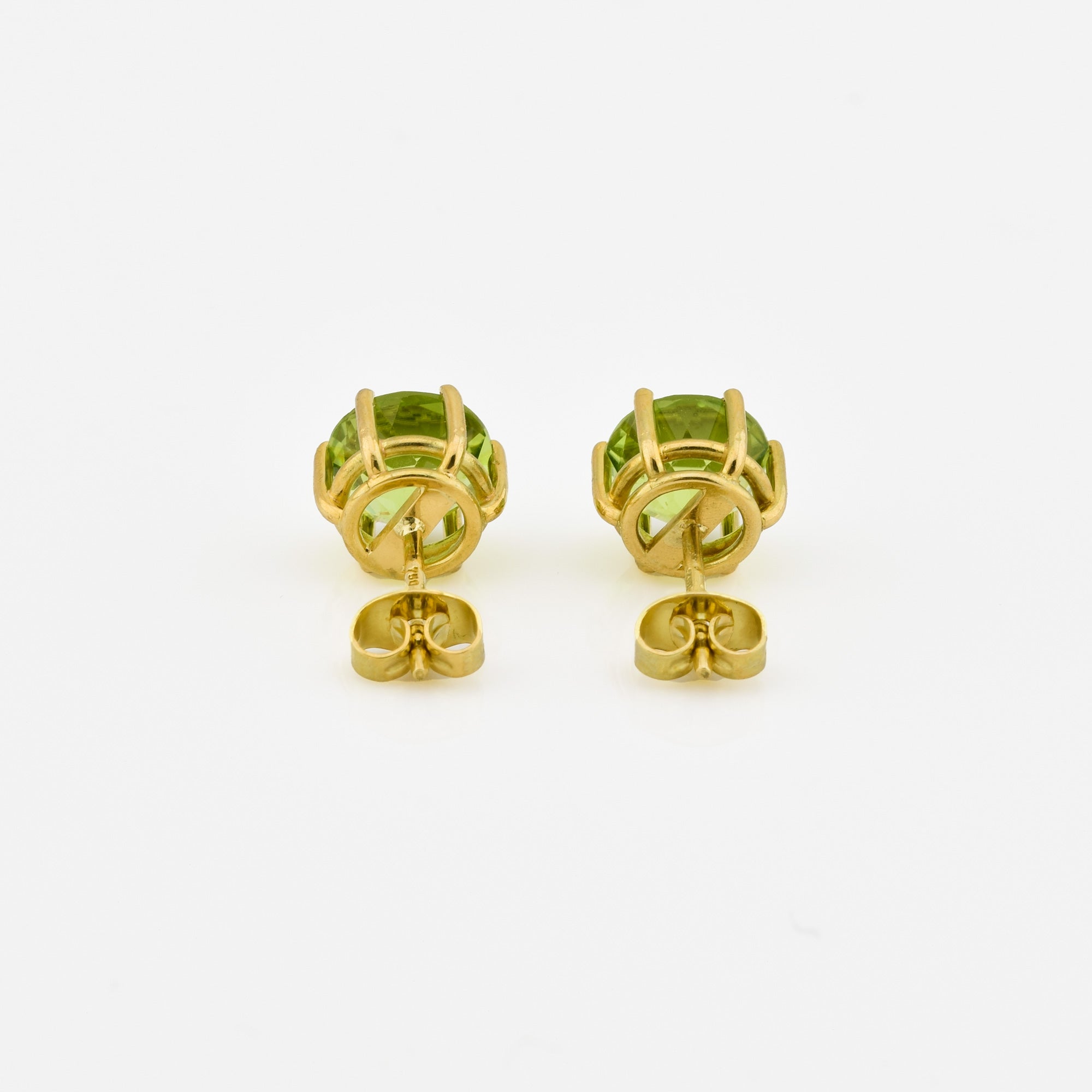 Bei dem Schmuckstück handelt es sich um ein Paar Ohrstecker aus 750 Gelbgold mit zwei Peridots.