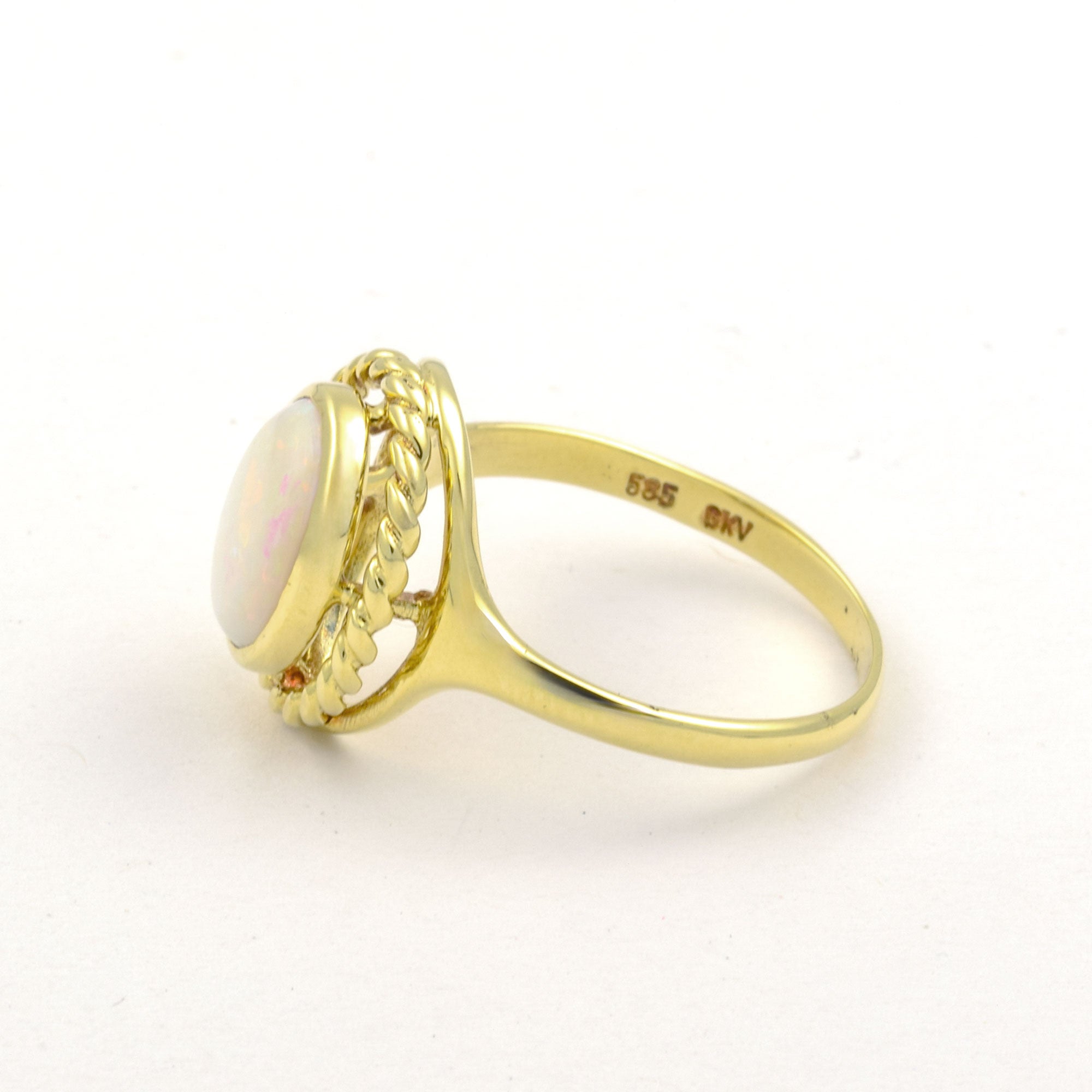 Bei dem Schmuckstück handelt es sich um einen Ring aus 585 Gelbgold mit einem Opalcabochon.