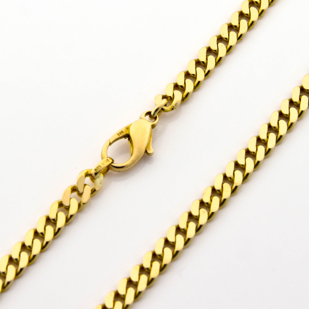 Bei dem Schmuckstück handelt es sich um eine Panzerkette der Marke FBM aus 585 Gelbgold. Das Schmuckstück hat eine Gesamtlänge von 57 cm.