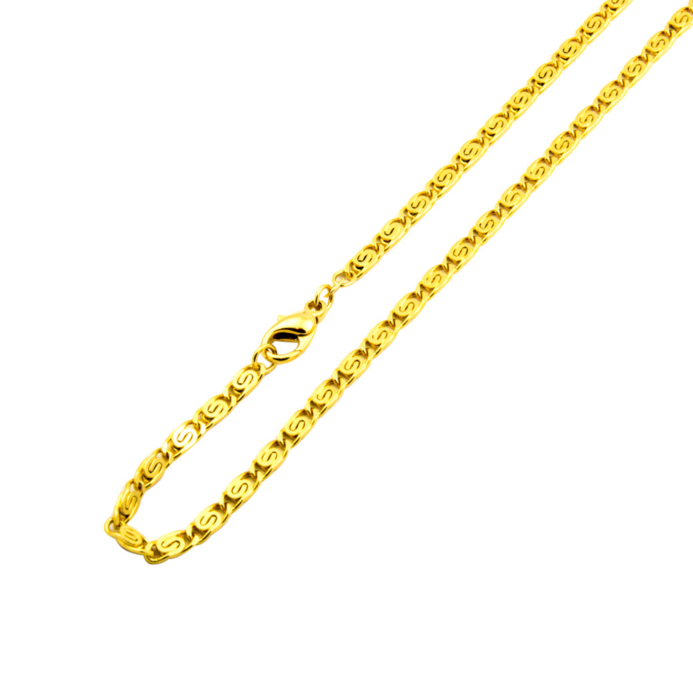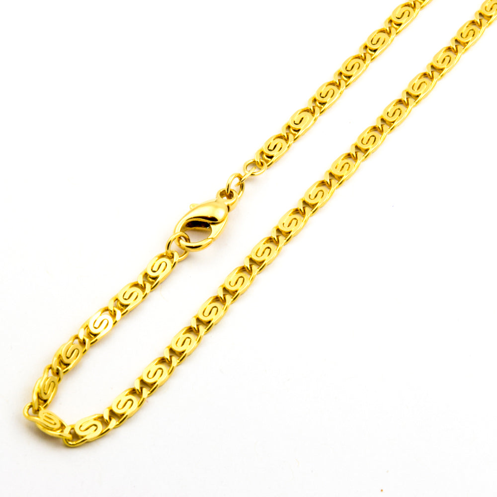 Bei dem Schmuckstück handelt es sich um eine S-Panzerkette aus 585 Gelbgold. Das Schmuckstück hat eine Gesamtlänge von 44 cm.