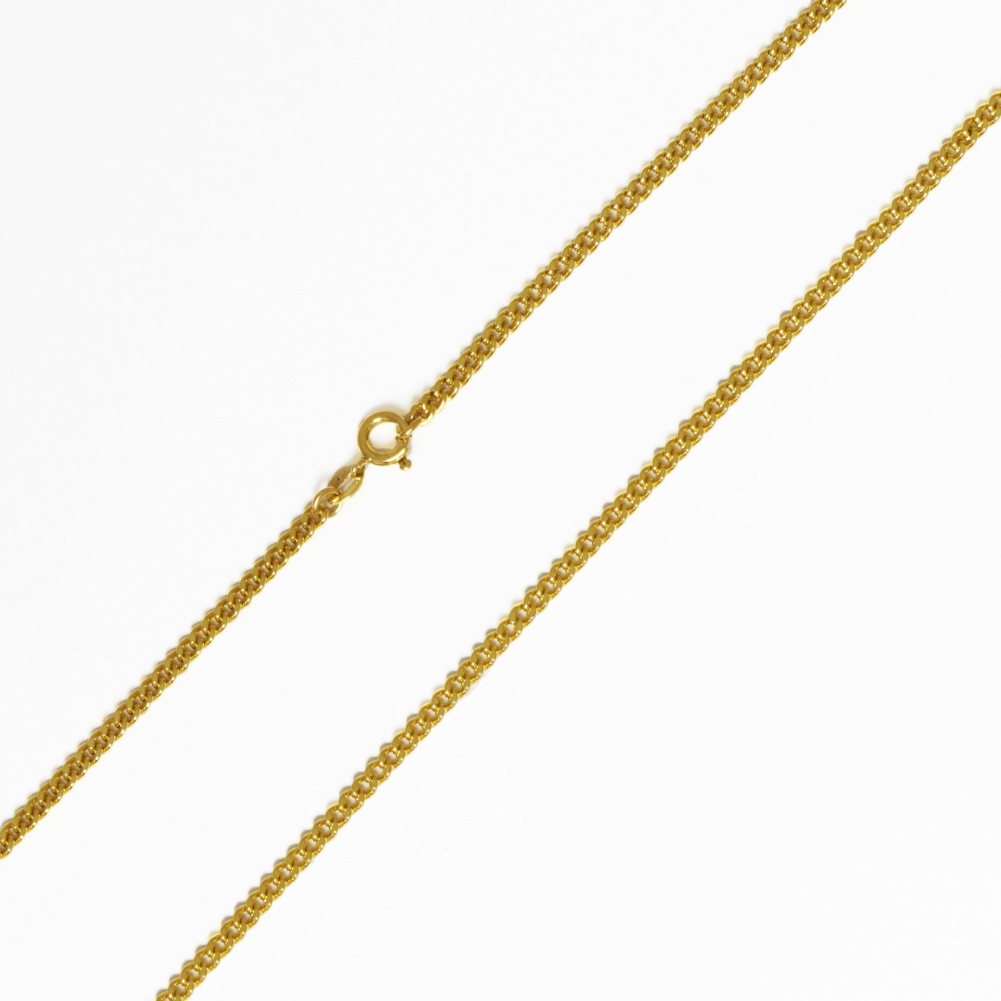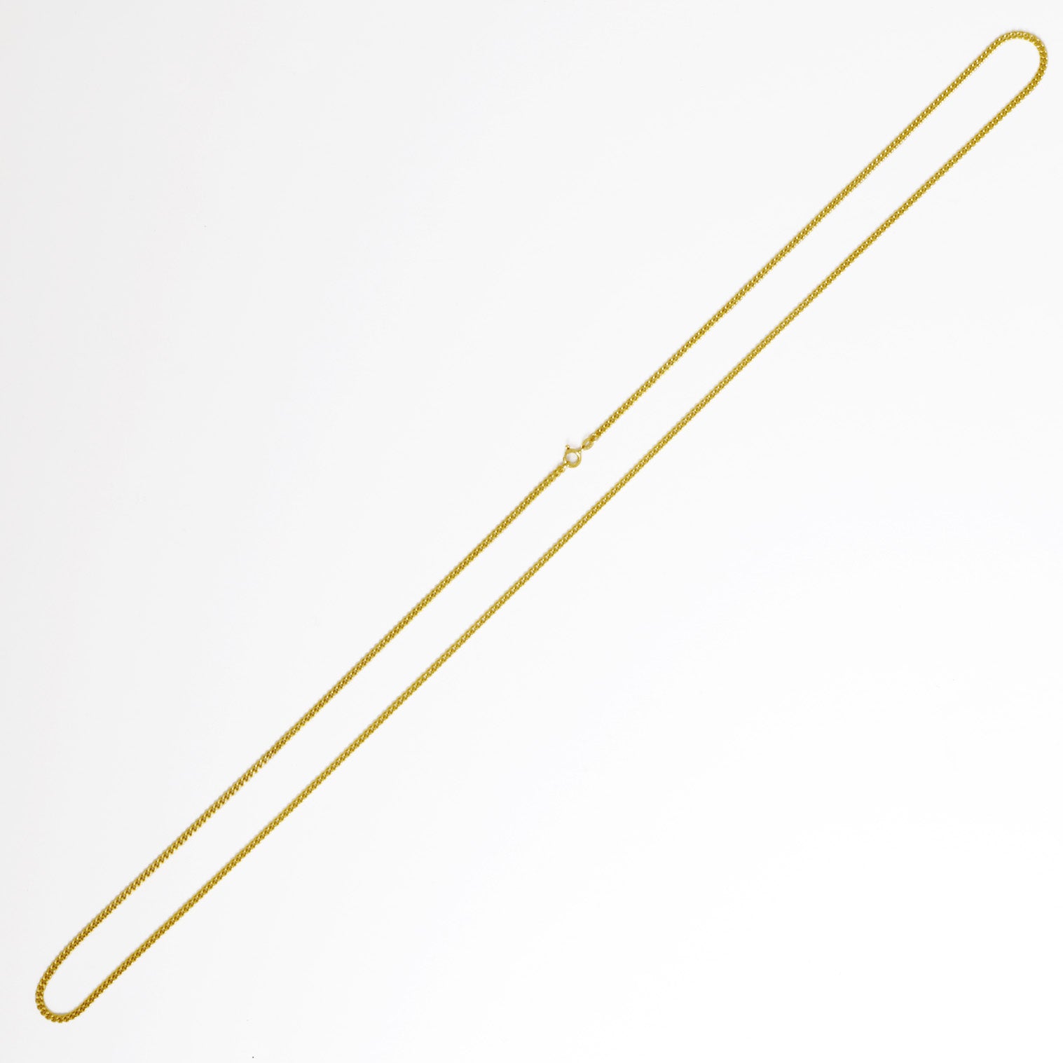 Bei dem Schmuckstück handelt es sich um eine Panzerkette aus 750 Gelbgold. Das Schmuckstück hat eine Gesamtlänge von 82,5 cm.