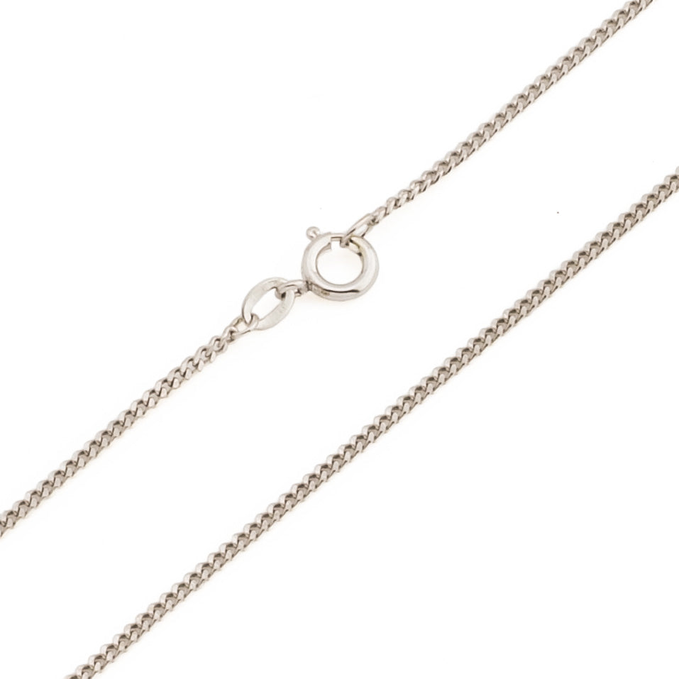 Bei dem Schmuckstück handelt es sich um eine Panzerkette aus 585 Weißgold. Das Schmuckstück hat eine Gesamtlänge von 40 cm.