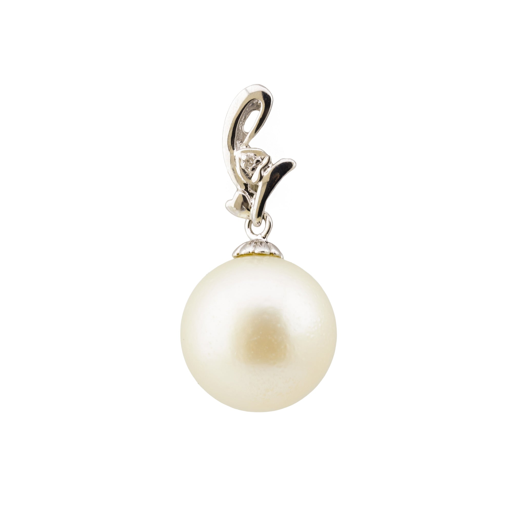 Bei dem Schmuckstück handelt es sich um einen Anhänger aus 750 Weißgold mit einer Südseezuchtperle und einem Brillanten von ca. 0,001 ct in der Qualität Weiß mit kleinen Einschlüssen (W/si).