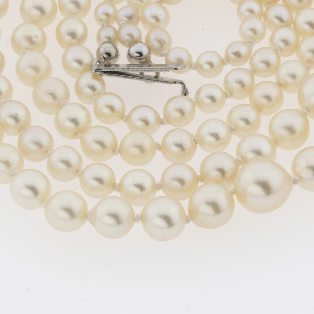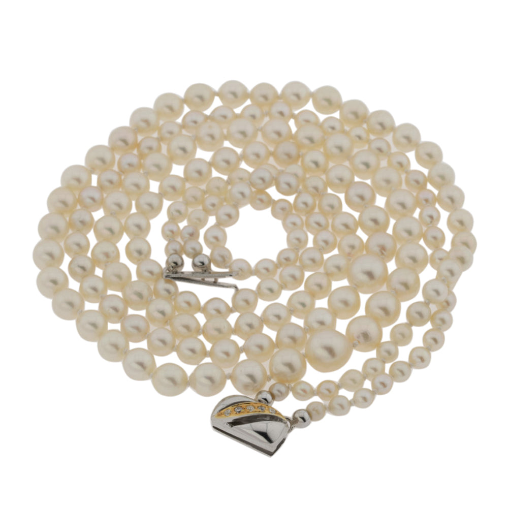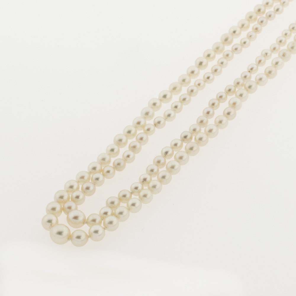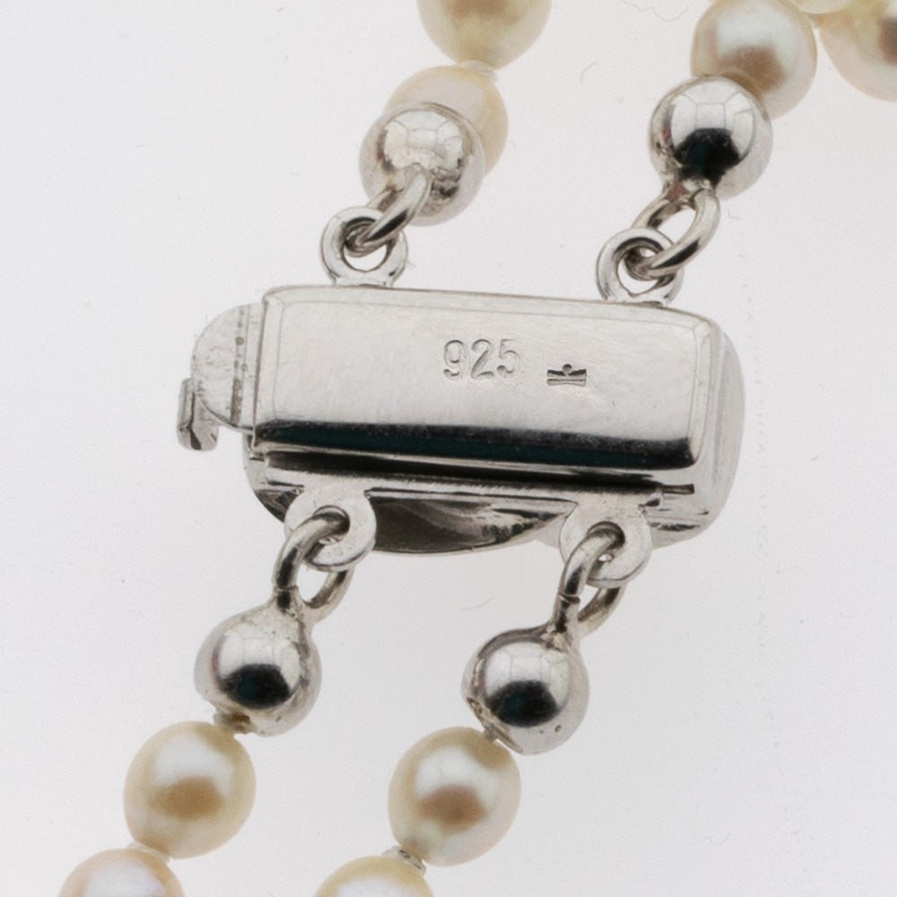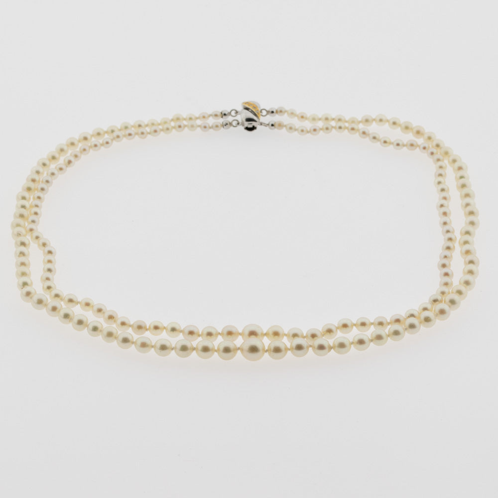 Zweireihige Perlenkette im Verlauf mit Schließe aus Silber vergoldet, neuwertig