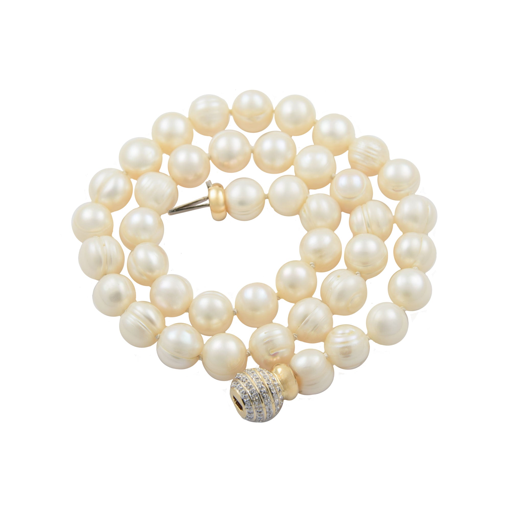 Perlenkette mit Schließe aus Gelb- und Weißgold mit Diamant