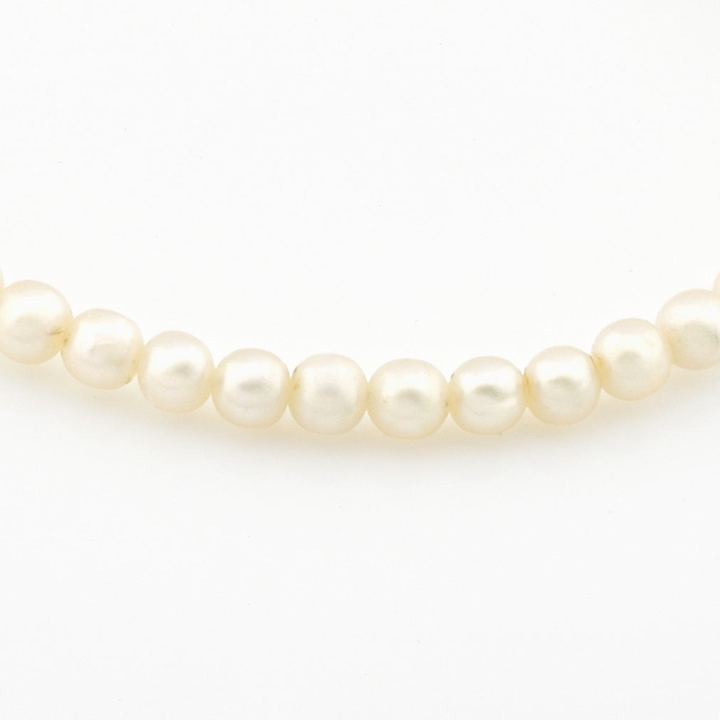 Bei dem Schmuckstück handelt es sich um ein Armband aus Süßwasserzuchtperlen. Das Schmuckstück hat eine Gesamtlänge von 19 cm.