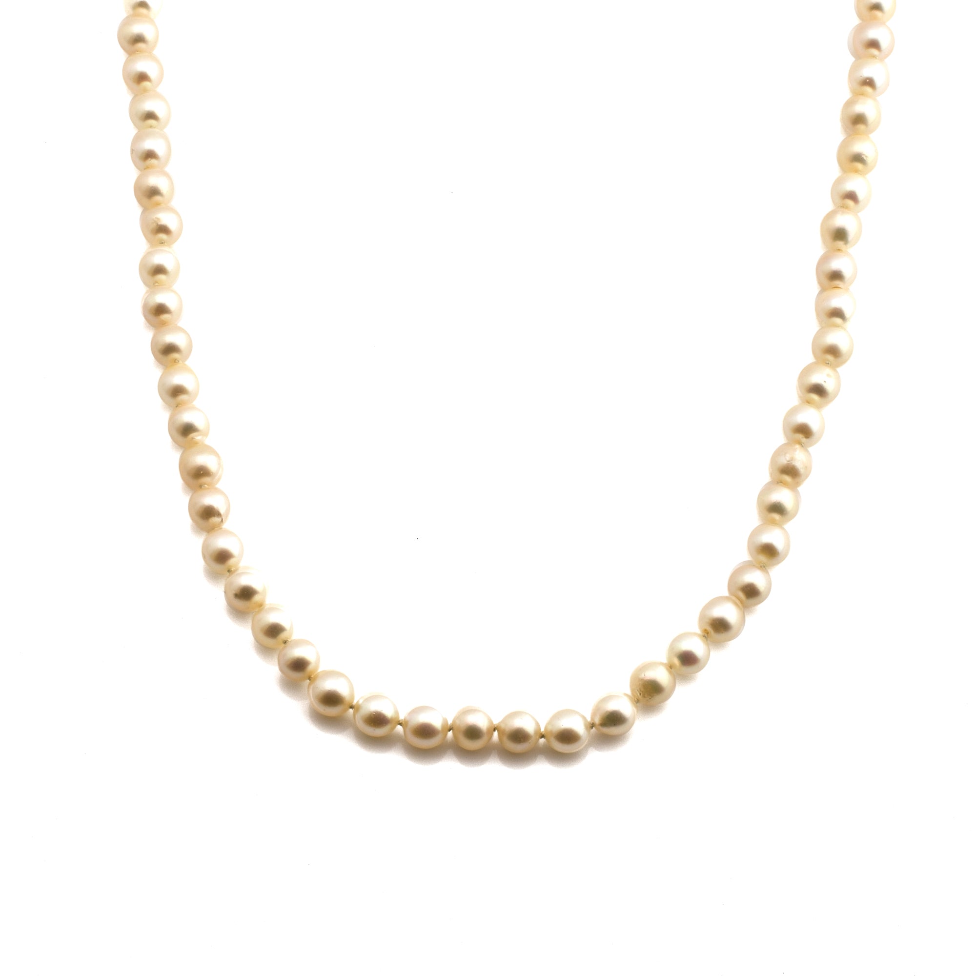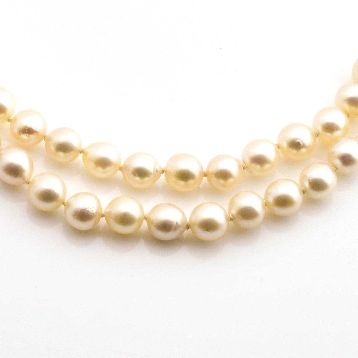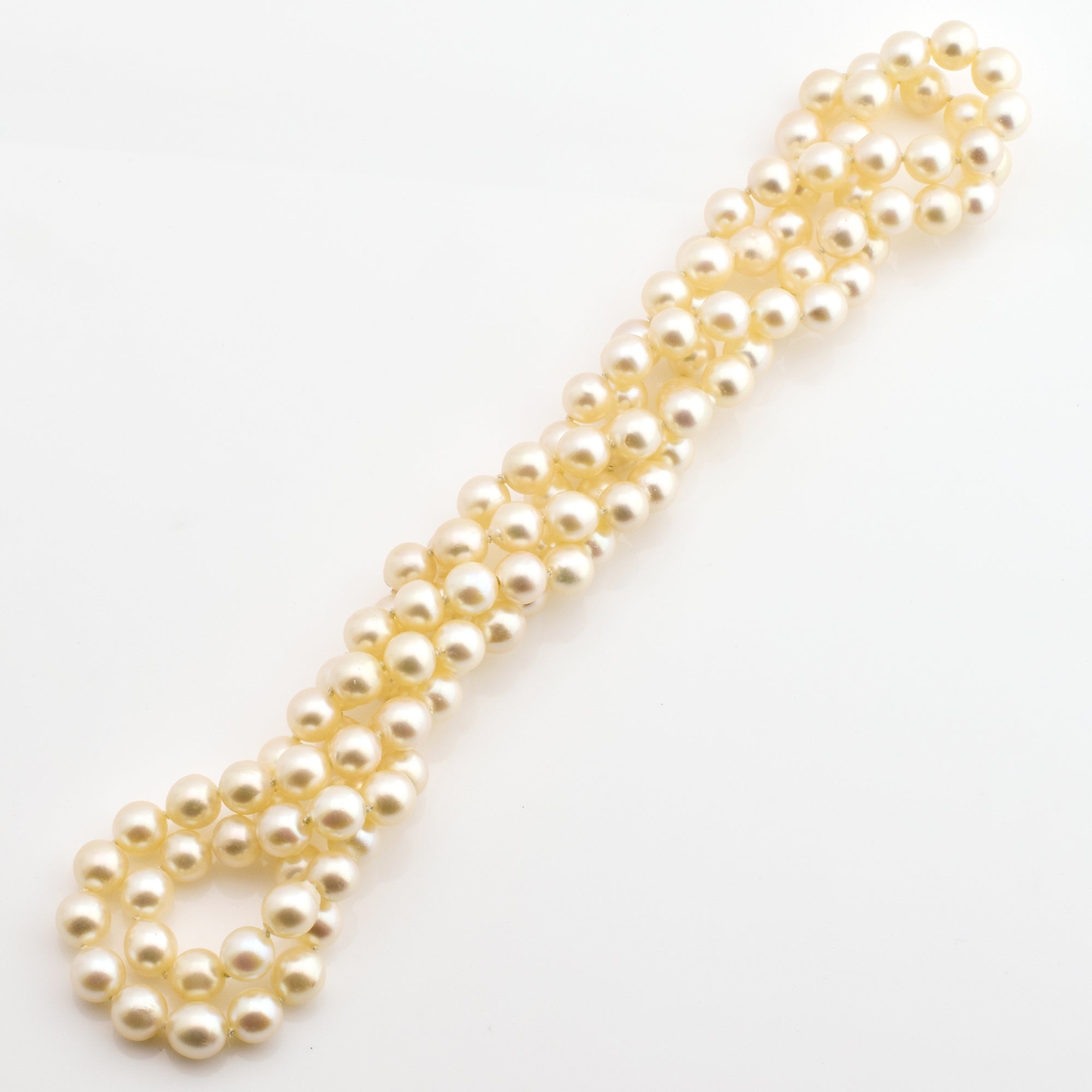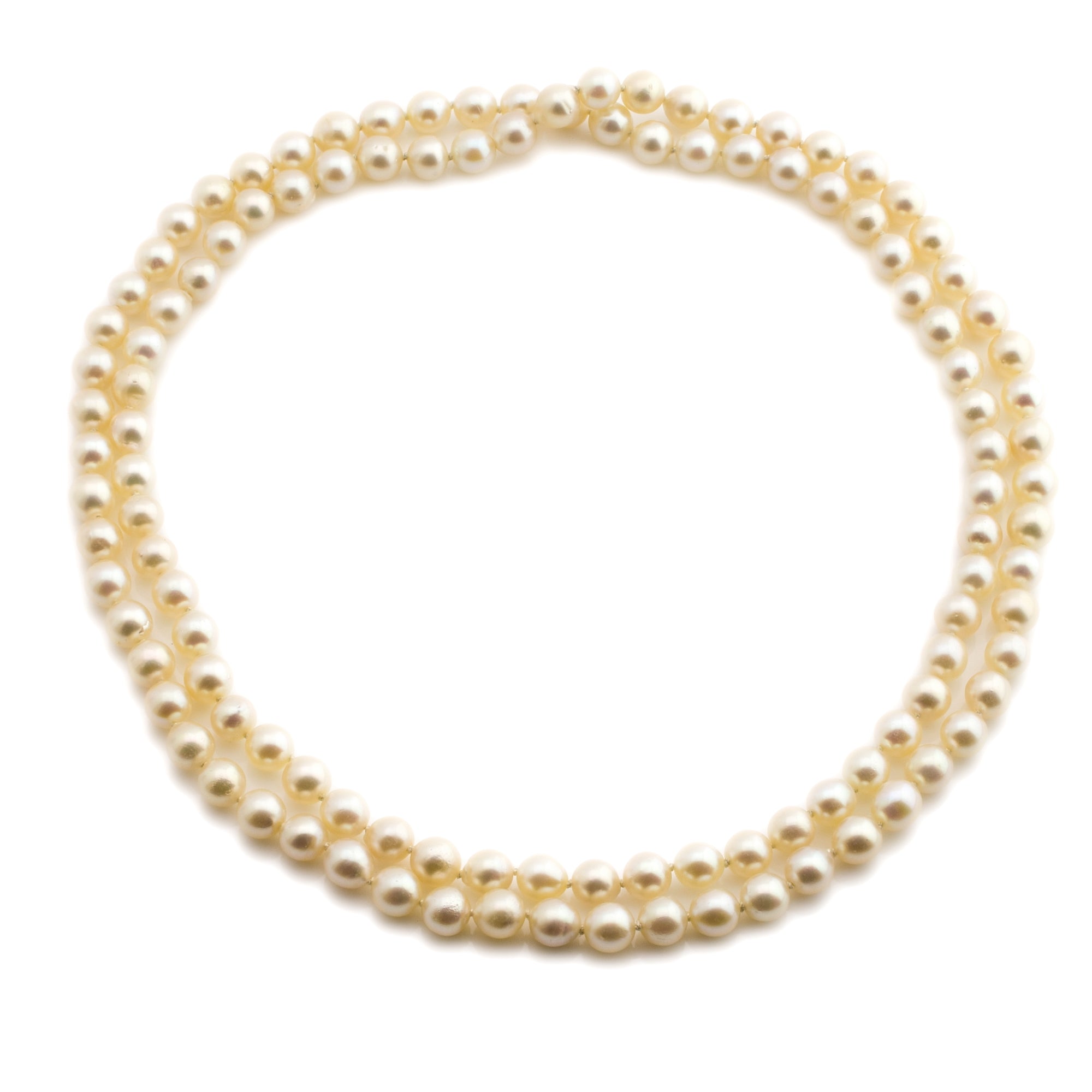 Bei dem Schmuckstück handelt es sich um eine Zuchtperlenkette. Das Schmuckstück ist endlos und hat eine Gesamtlänge von 100 cm.