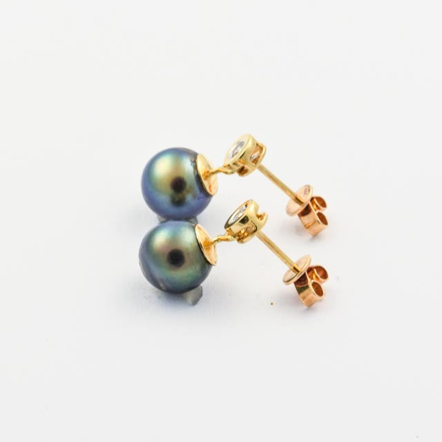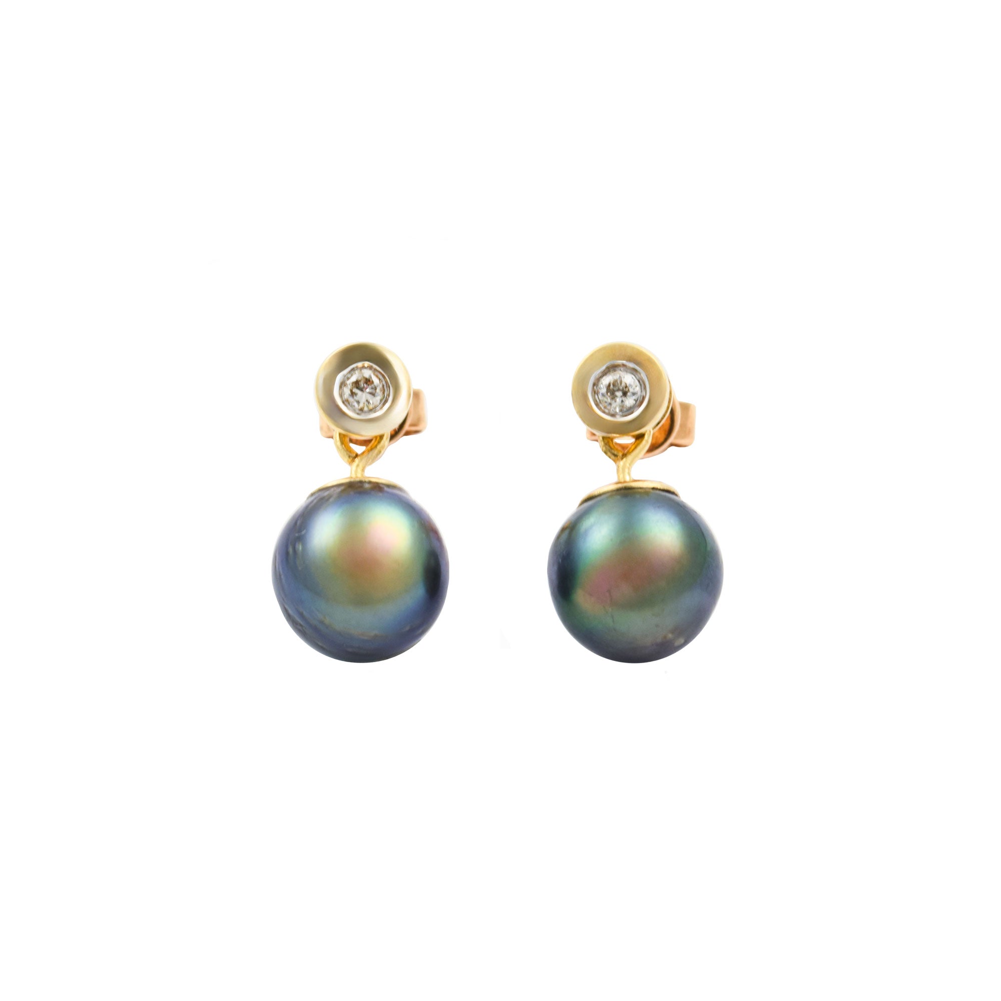 Bei dem Schmuckstück handelt es sich um ein Paar Ohrhänger aus 585 Gelbgold mit zwei Tahitizuchtperlen und zwei Brillanten von zusammen ca. 0,06 ct in der Qualität Weiß mit kleinen Einschlüssen (W/si).
