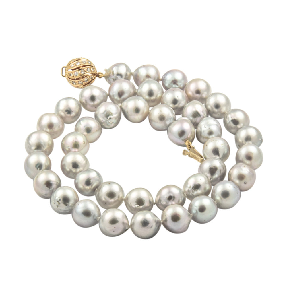 Schoeffel Südseezuchtperlenkette mit Schließe aus Gelbgold mit Brillant, neuwertig
