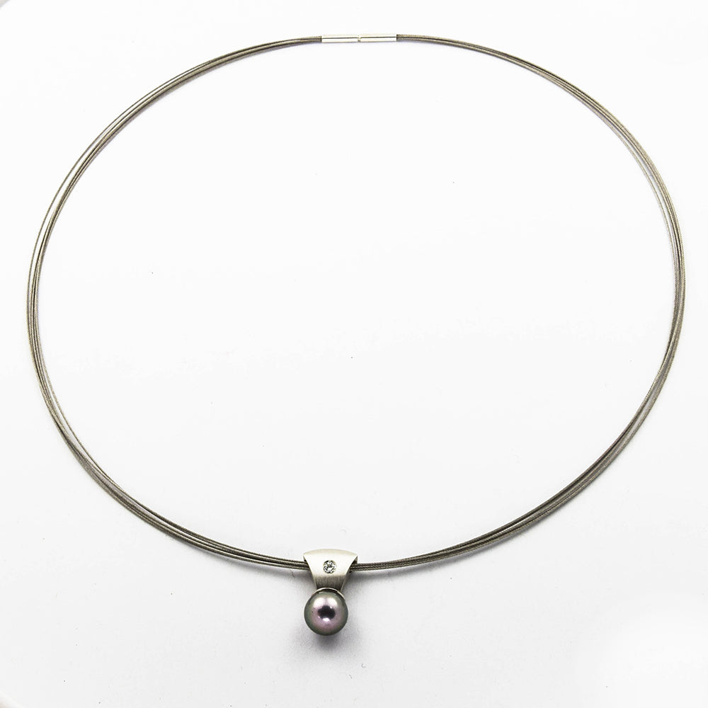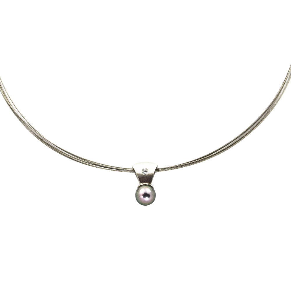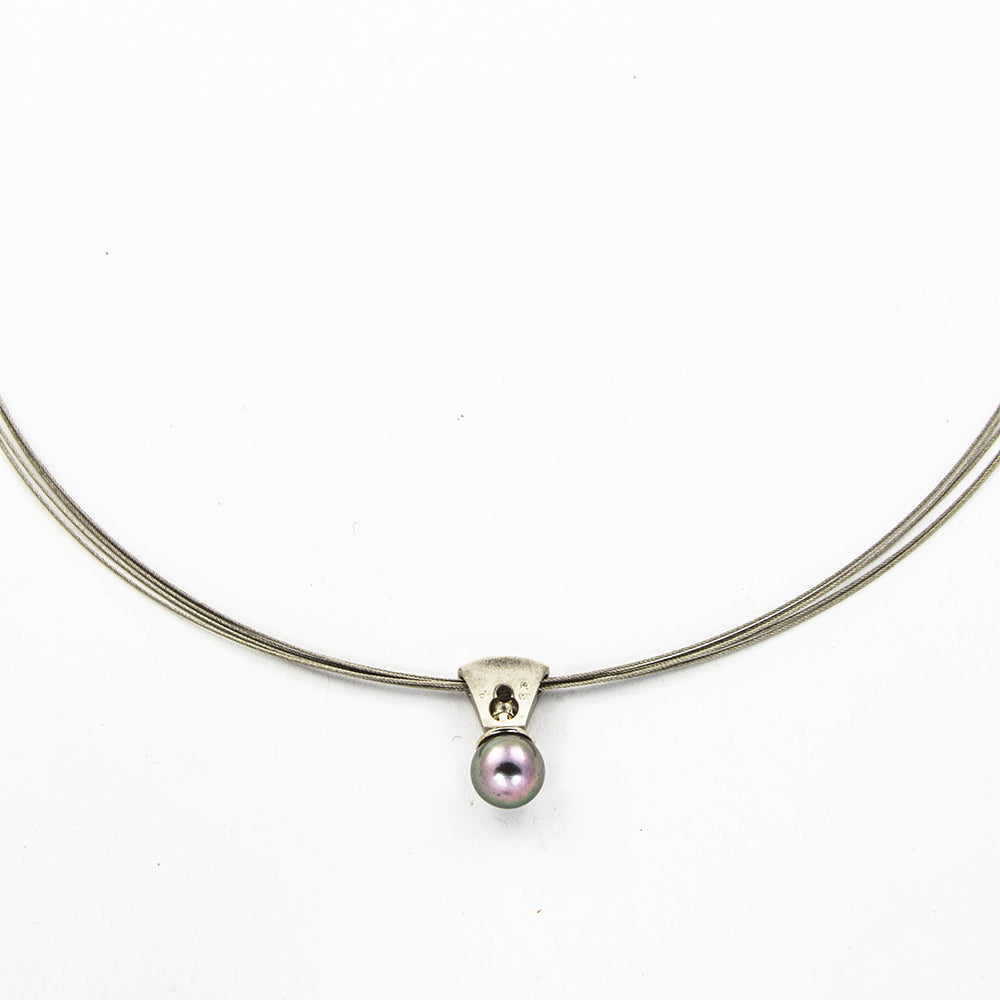 Edelstahlreif mit Anhänger aus Platin mit Perle