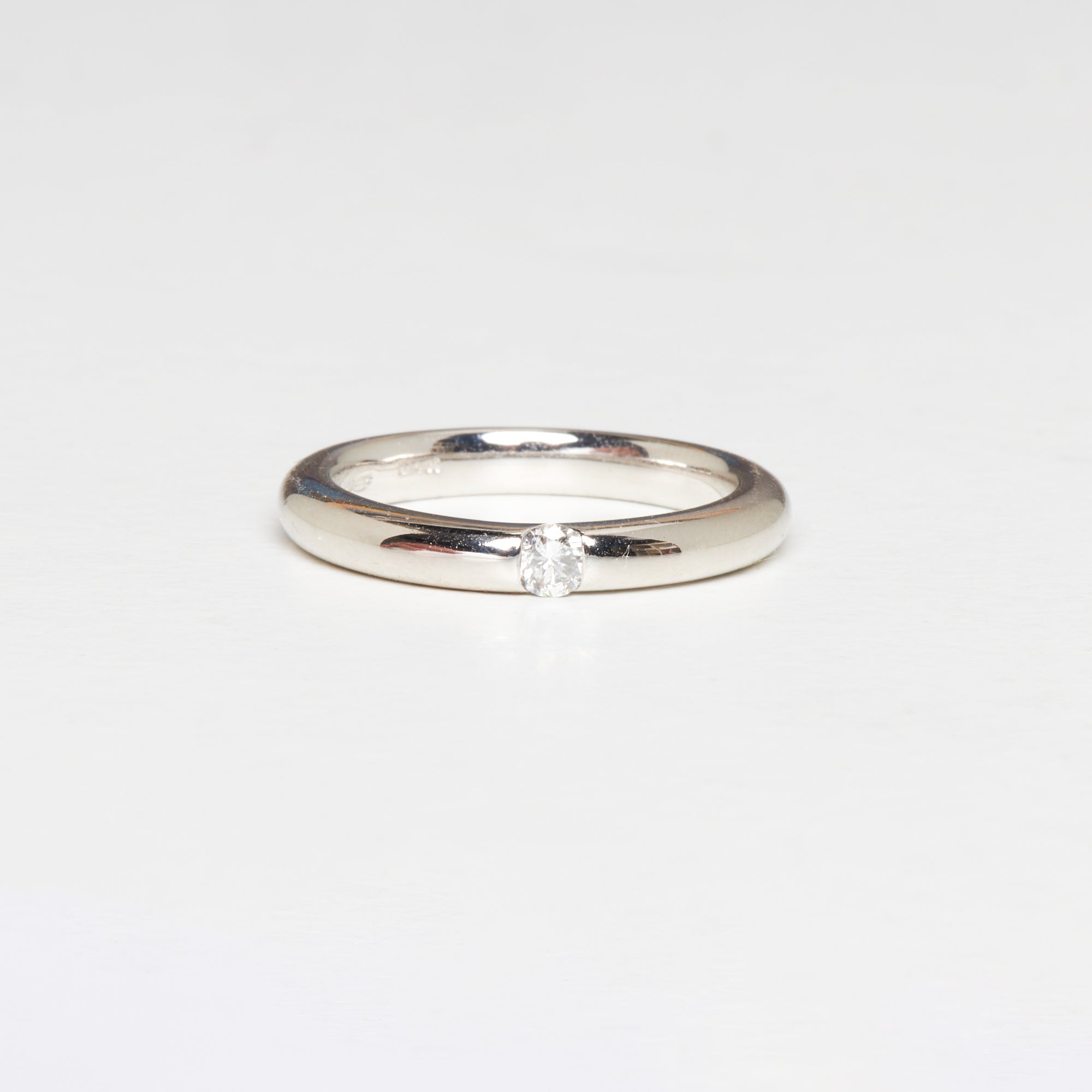 Bei dem Schmuckstück handelt es sich um einen Ring der Marke Quinn aus 750 Weißgold mit einem Brillanten von ca. 0,14 ct in der Qualität Weiß mit kleinen Einschlüssen (W/si).