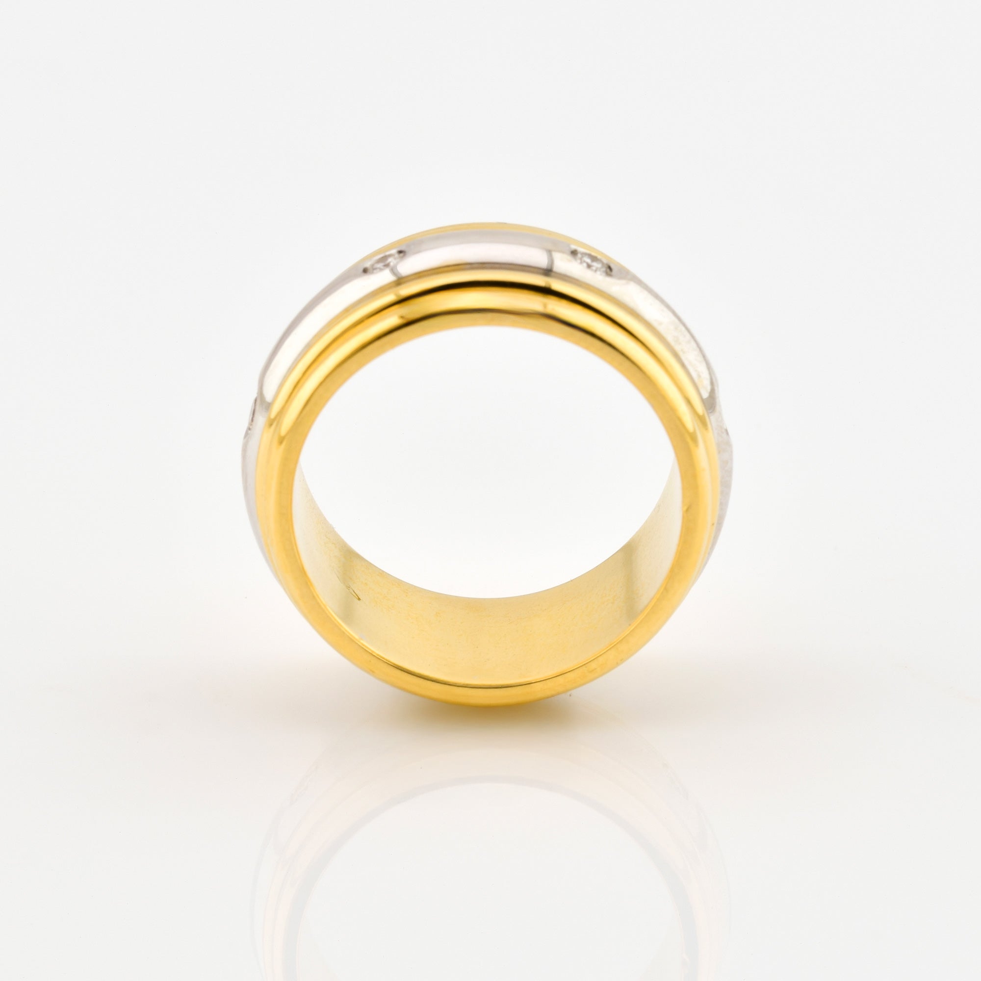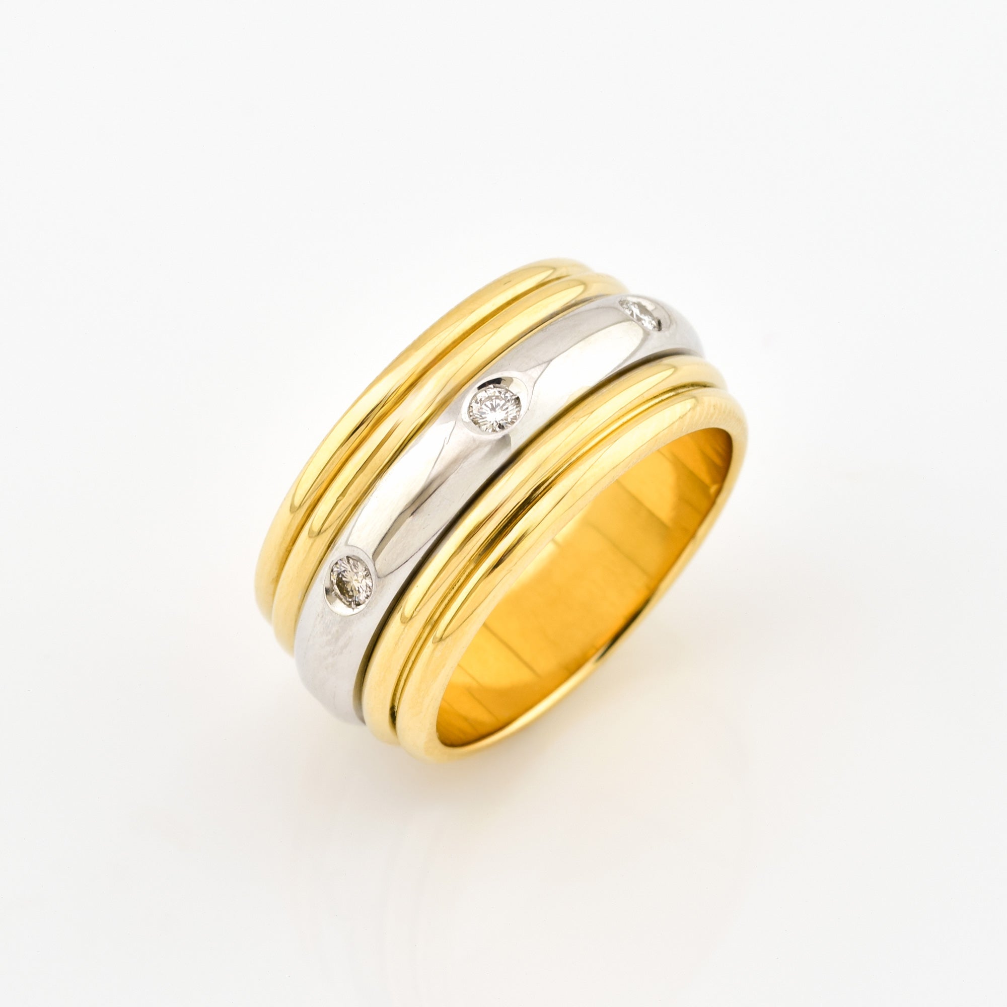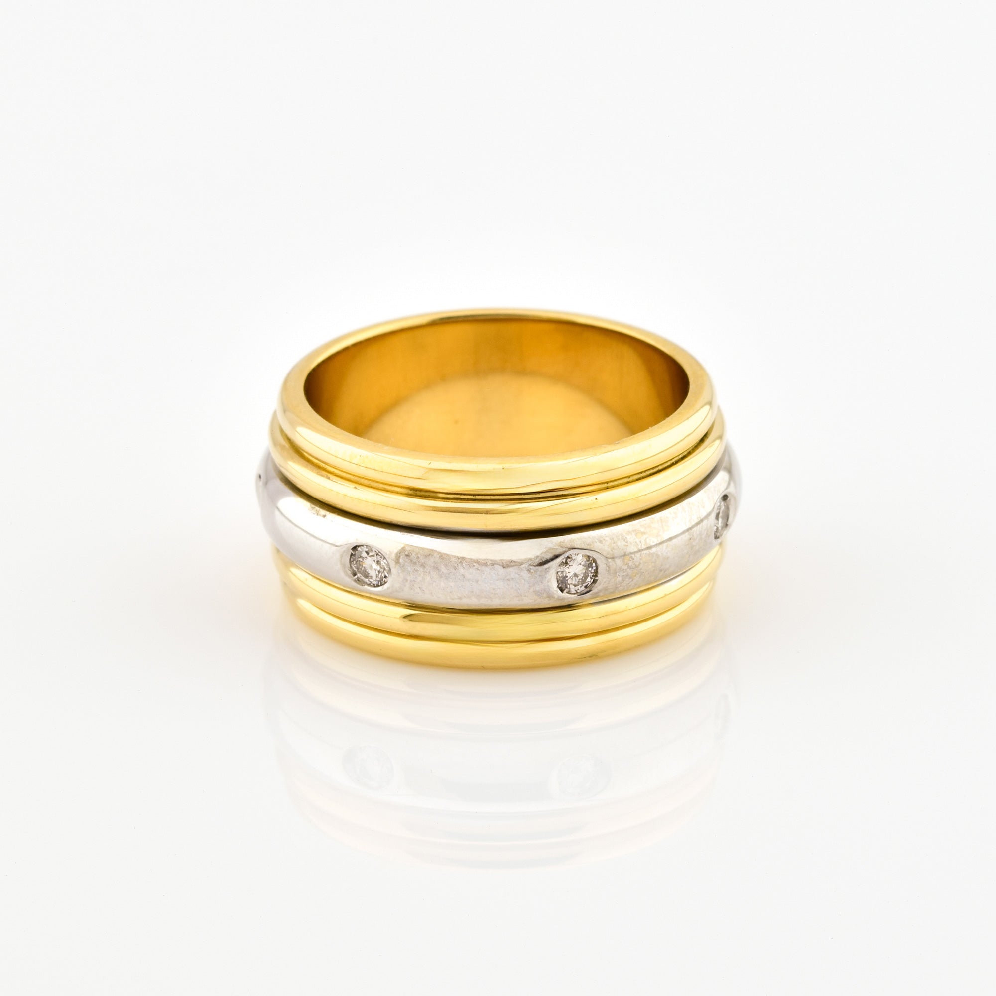 Bei dem Schmuckstück handelt es sich um einen Ring aus 750 Gelb- und Weißgold mit sieben Brillanten von zusammen ca. 0,175 ct in der Qualität Weiß mit kleinen Einschlüssen (W/si).