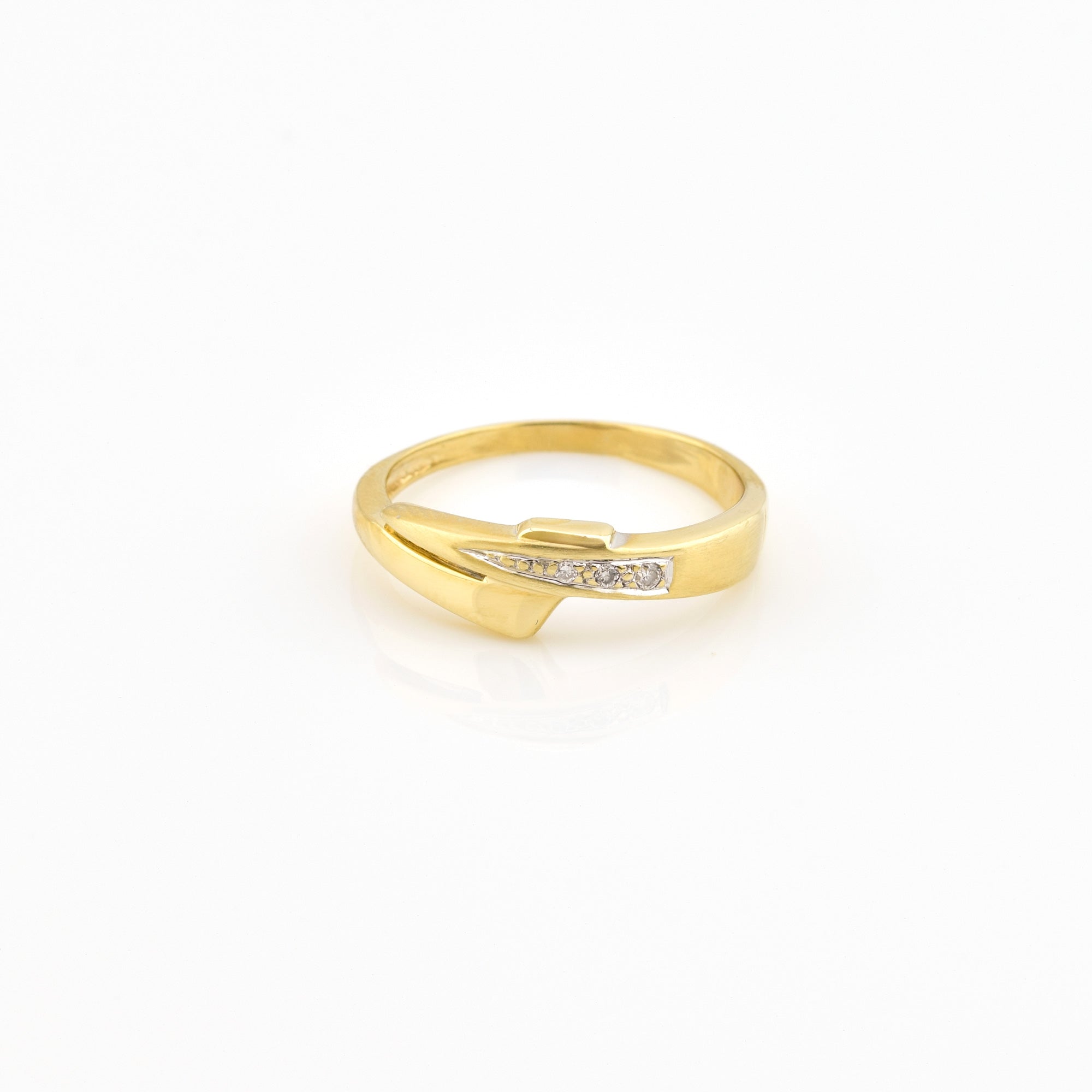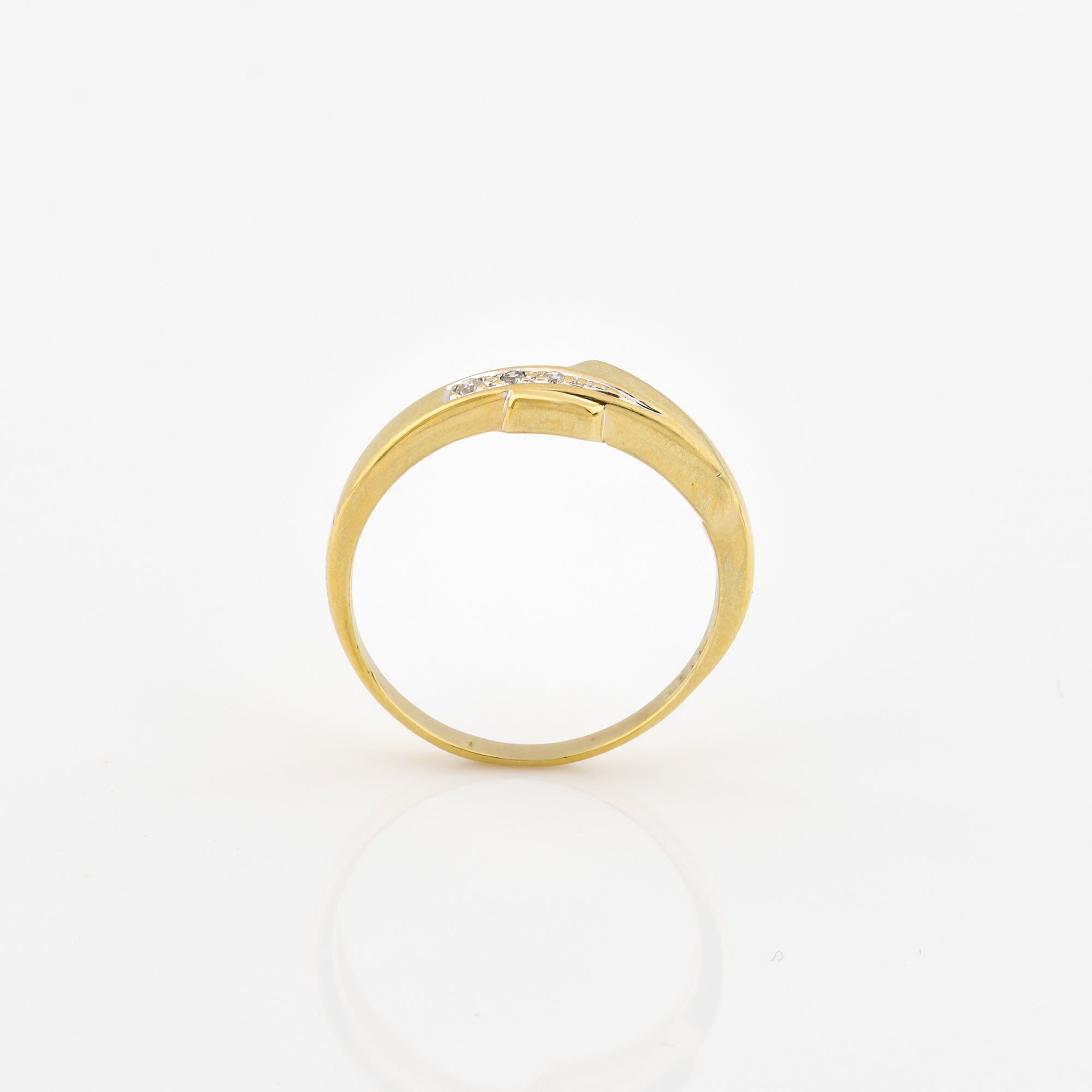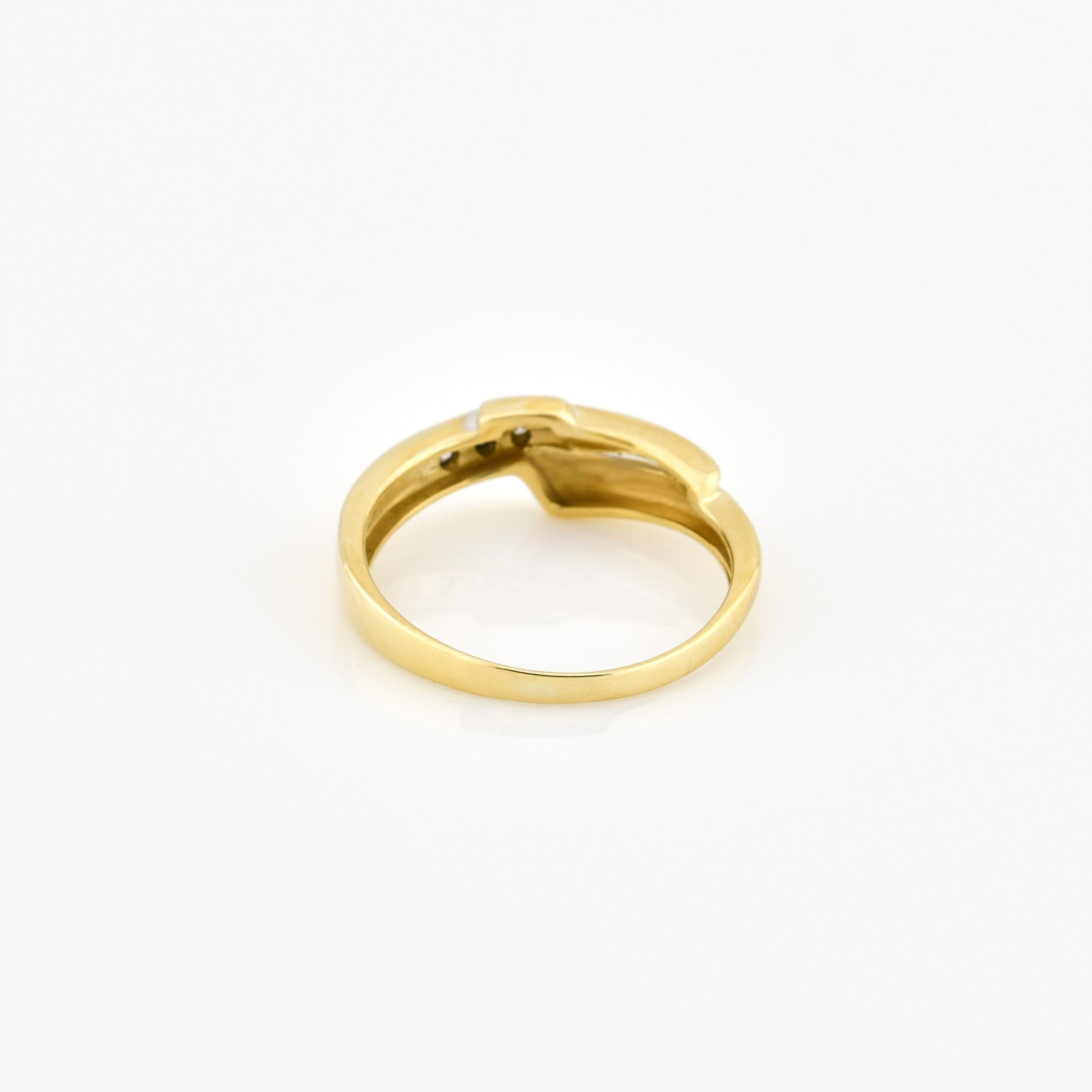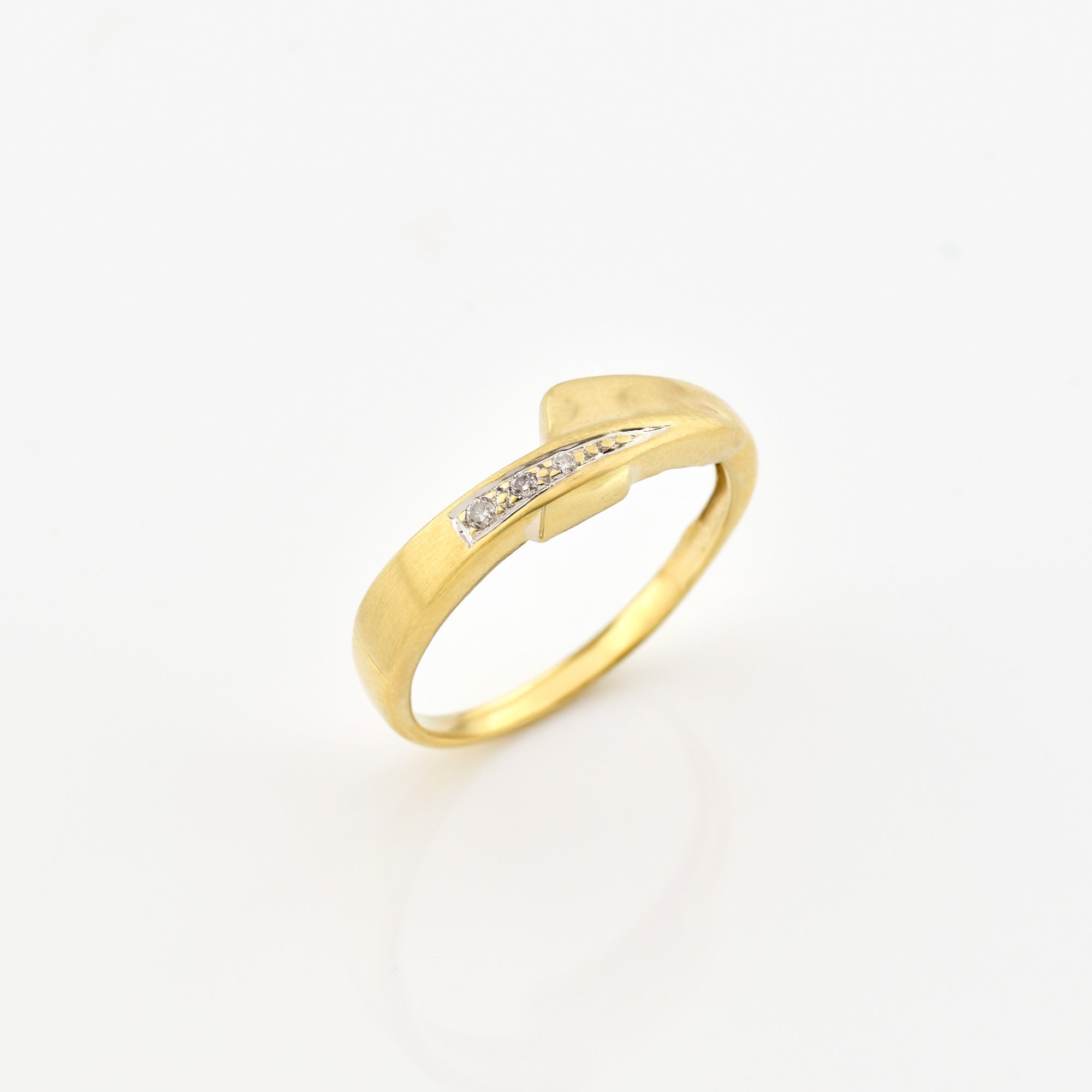 Bei dem Schmuckstück handelt es sich um einen Ring aus 585 Gelbgold mit drei Brillanten von zusammen ca. 0,03 ct in der Qualität Weiß mit kleinen Einschlüssen (W/si).