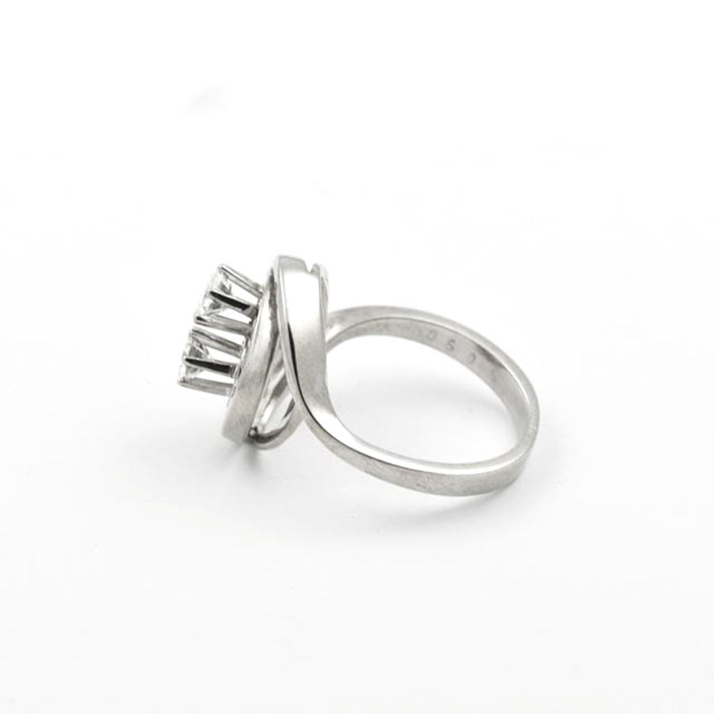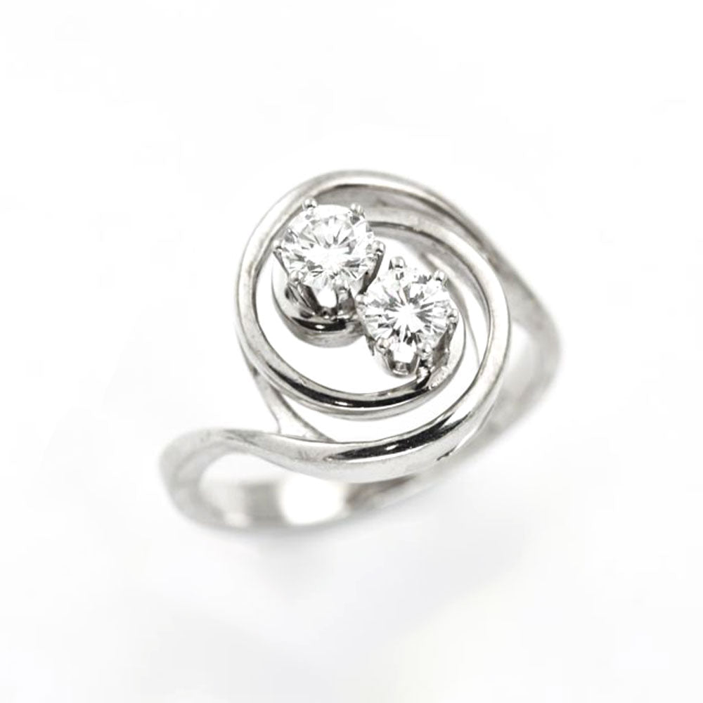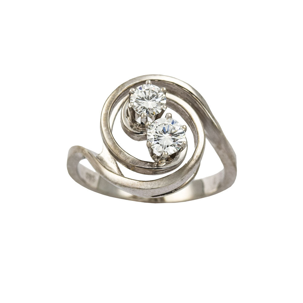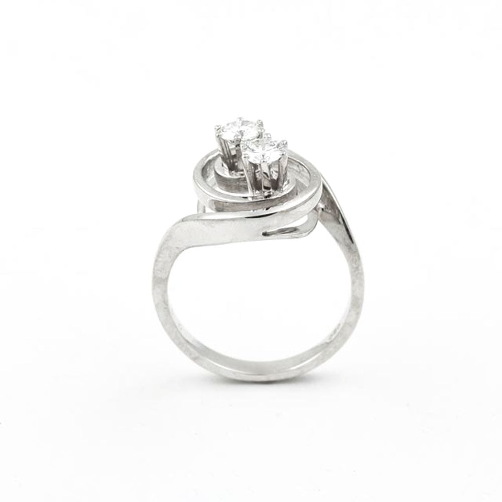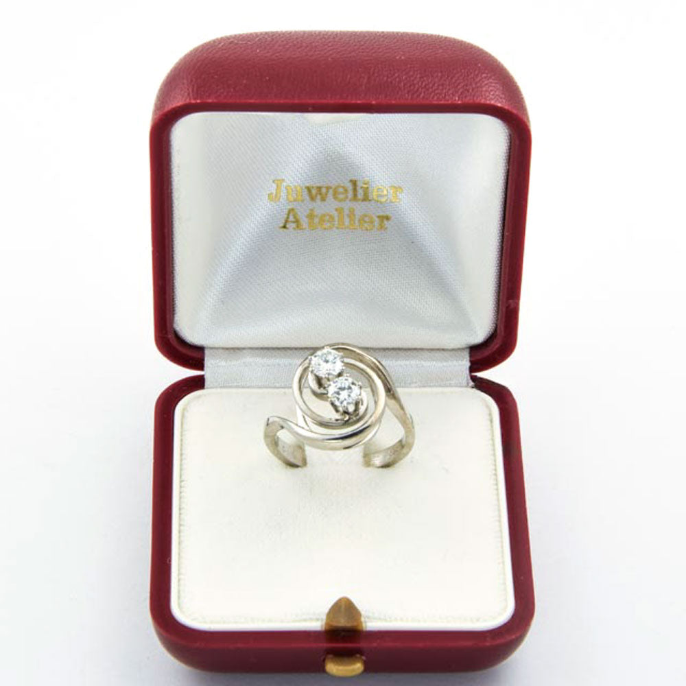 Bei dem Schmuckstück handelt es sich um einen Ring aus 585 Weißgold mit zwei Brillanten von zusammen ca. 0,5 ct in der Qualität Weiß und lupenrein (W/lupenrein).