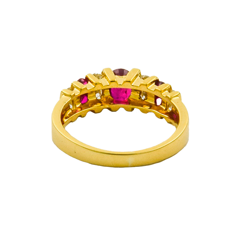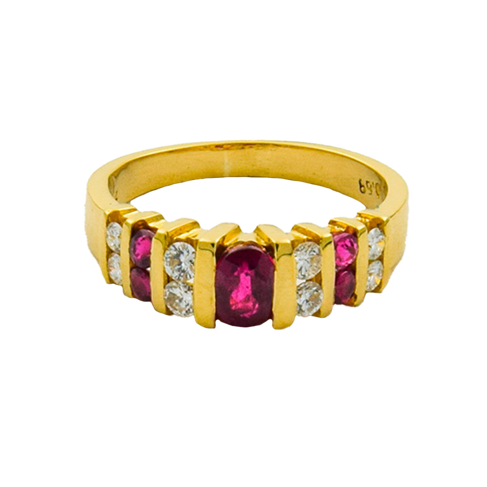 Vintage Ring aus Gelbgold mit Rubin und Brillant