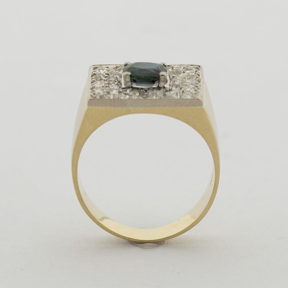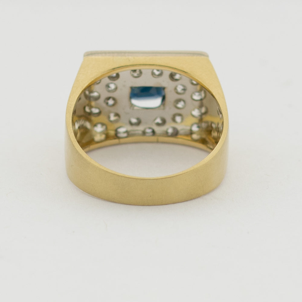Saphirring aus Gelb- und Weißgold mit Diamant