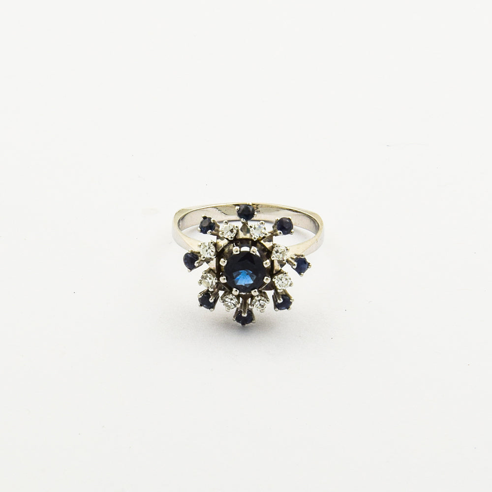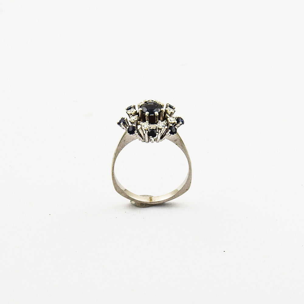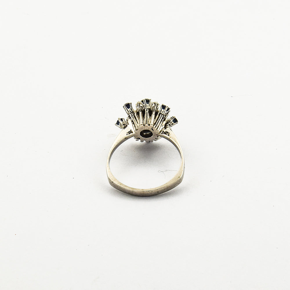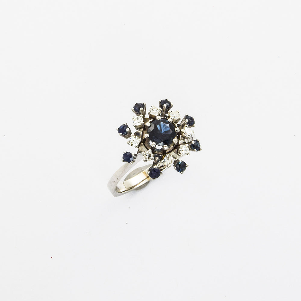 Ring aus Weißgold mit Saphir und Diamant, 1980er Jahre