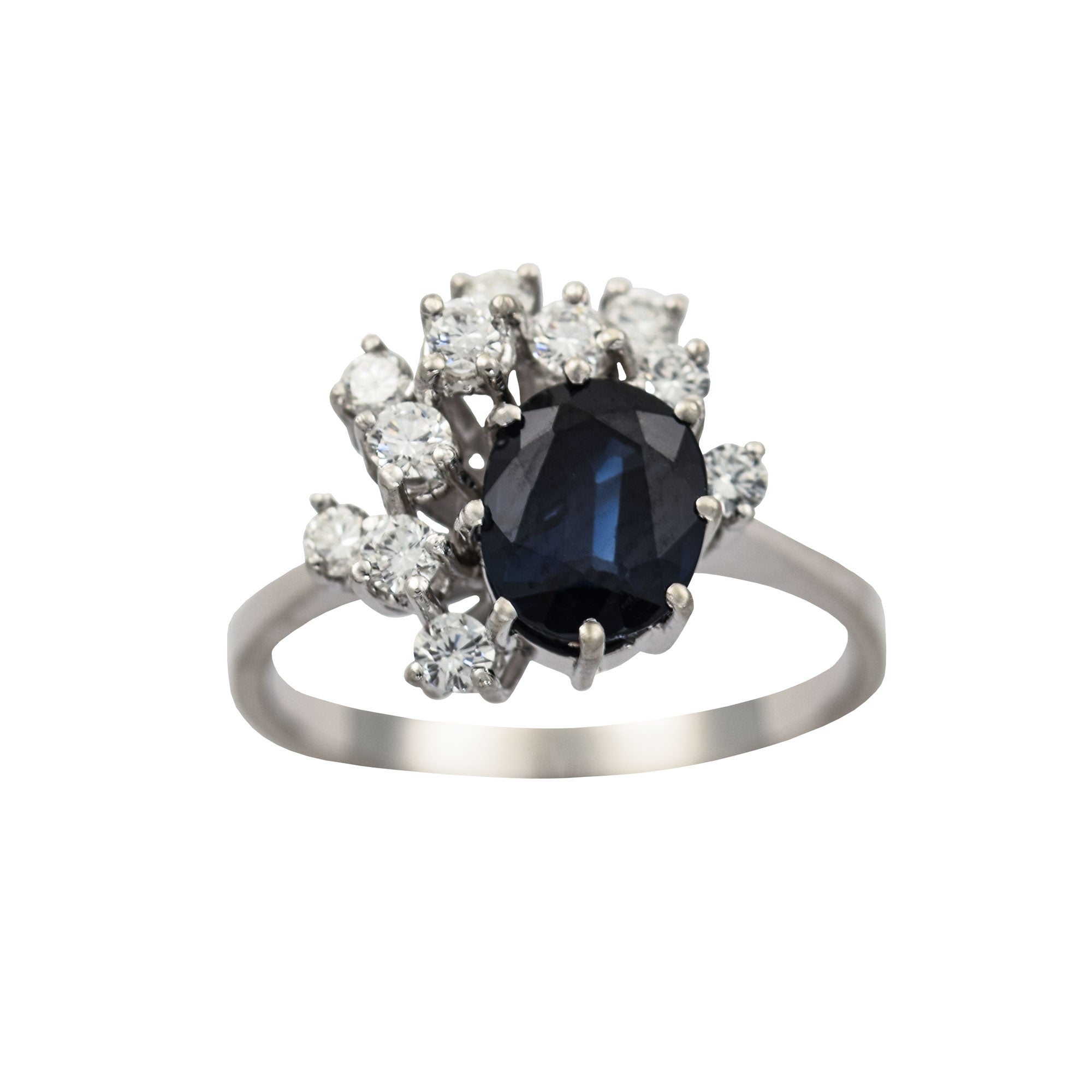 Saphirring aus Weißgold mit Brillant