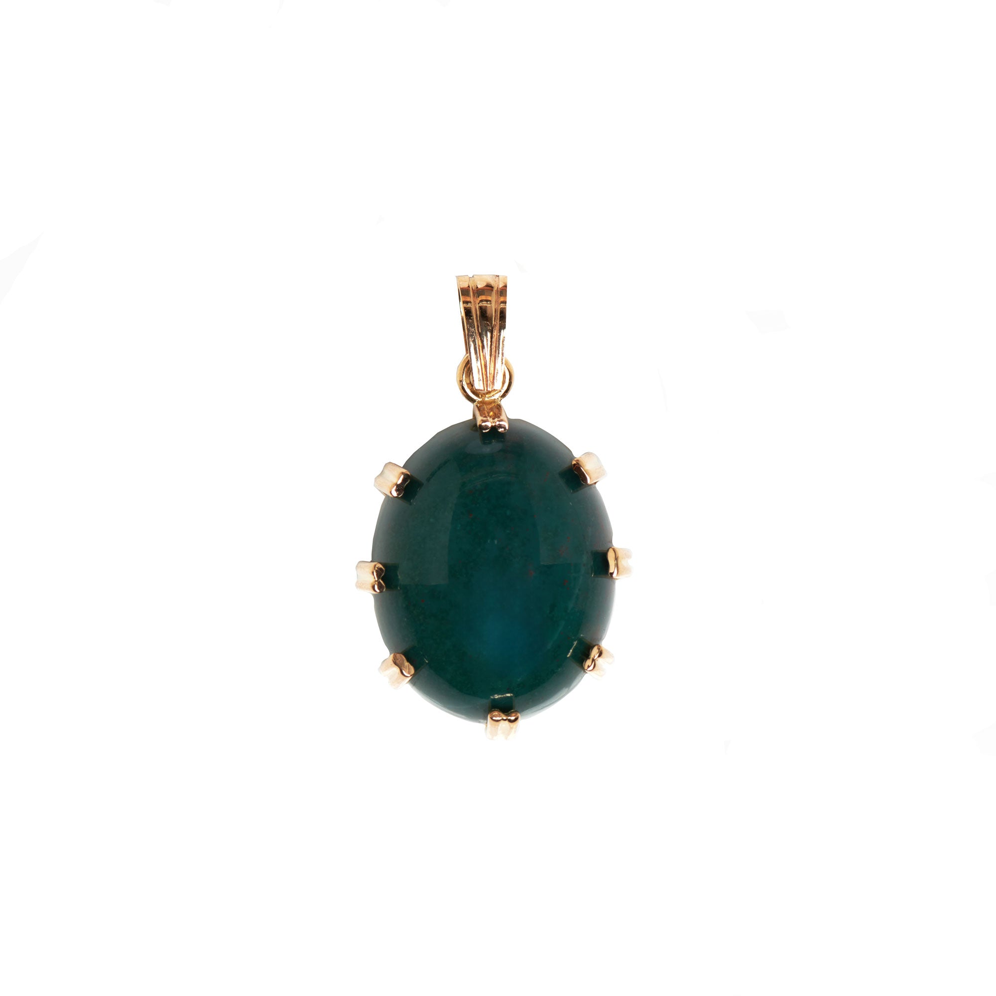 Bei dem Schmuckstück handelt es sich um einen Anhänger aus 585 Roségold mit einem Heliotrop.