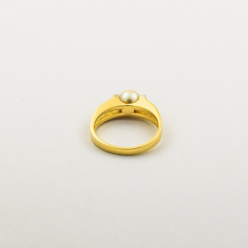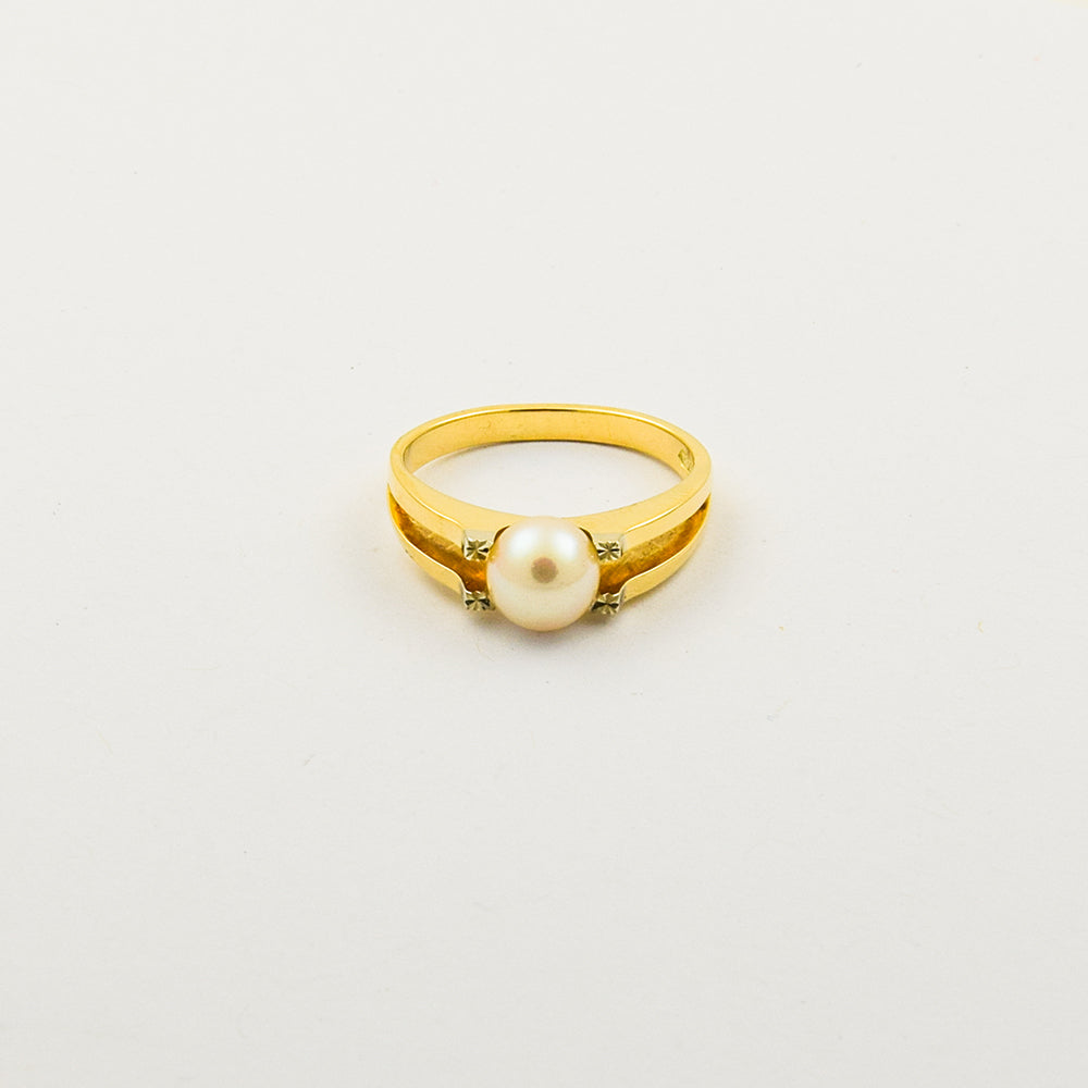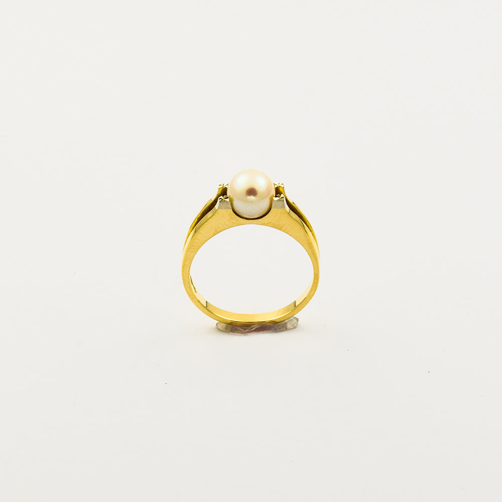 Bei dem Schmuckstück handelt es sich um einen Ring aus 585 Gelb- und Weißgold mit einer Zuchtperle.