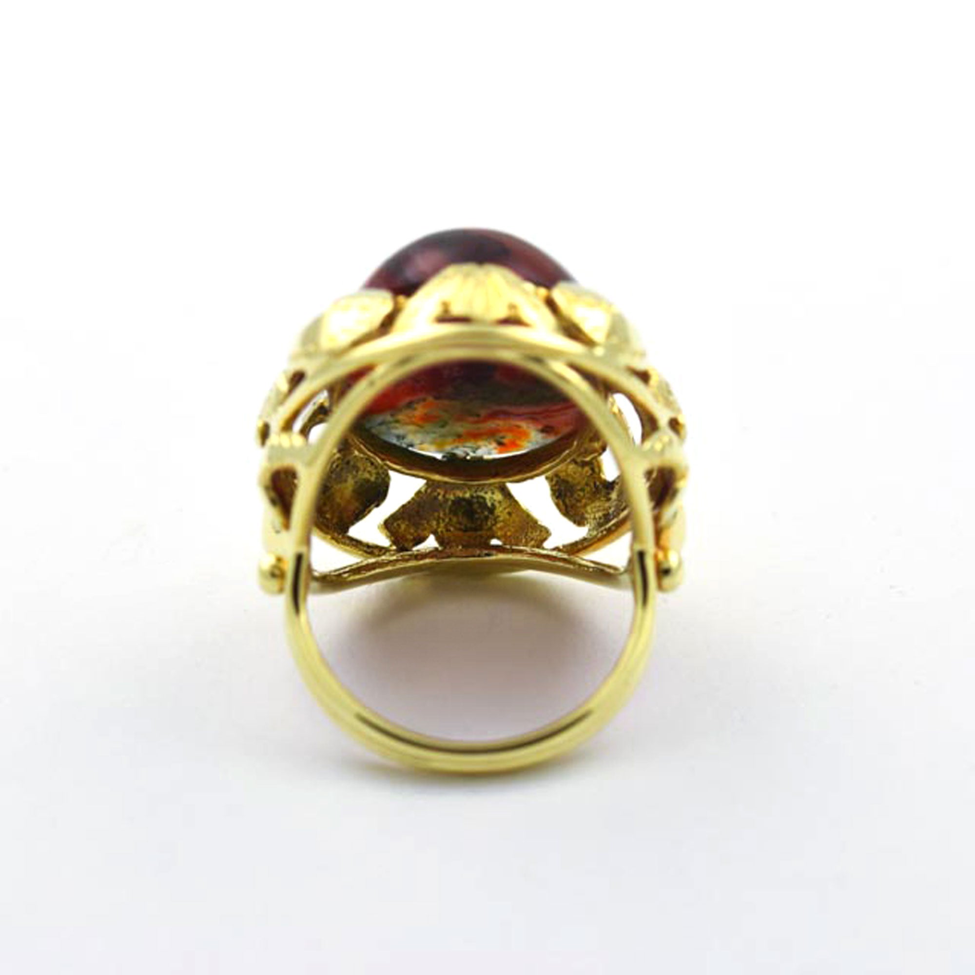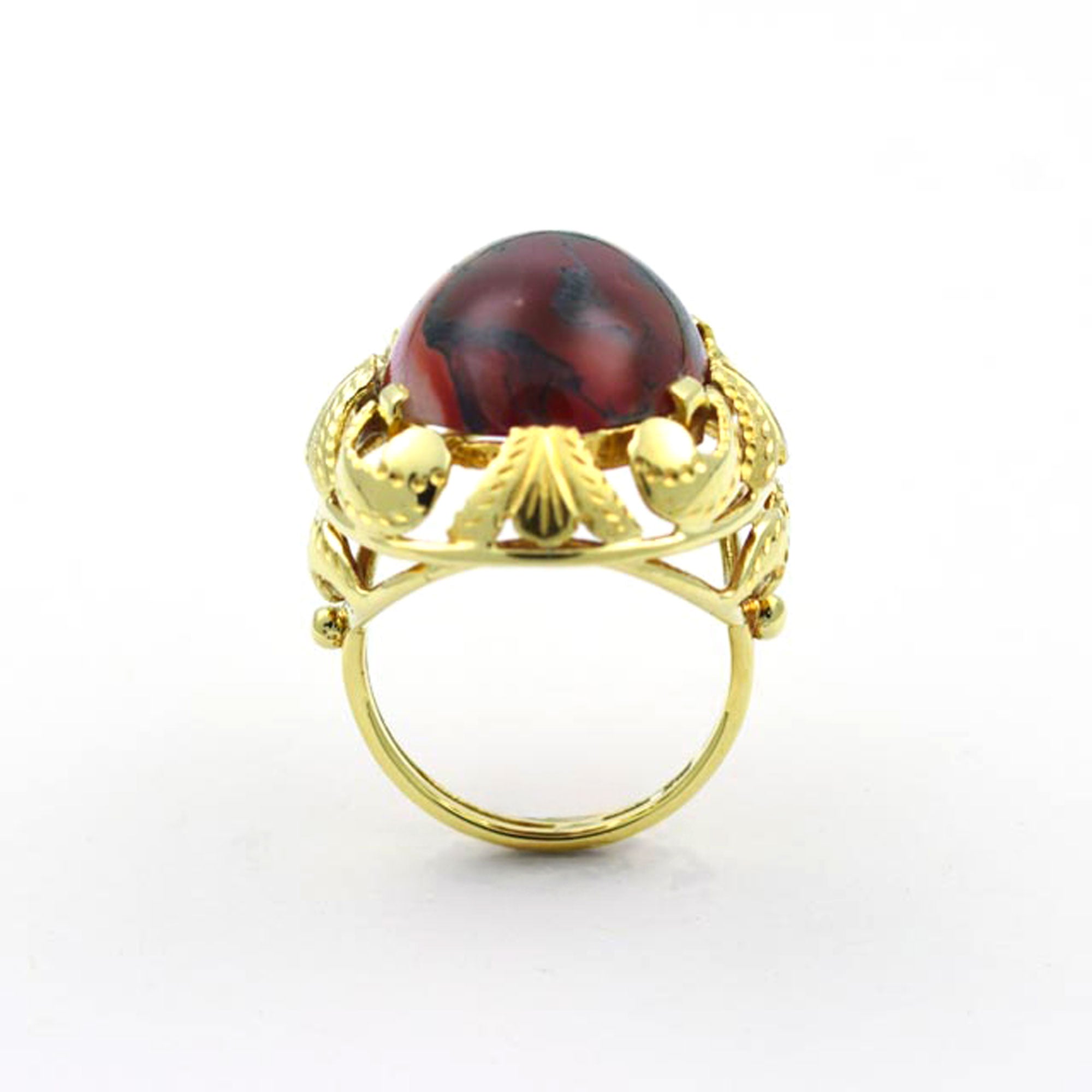 Bei dem Schmuckstück handelt es sich um einen Ring aus 585 Gelbgold mit einem Achatcabochon.