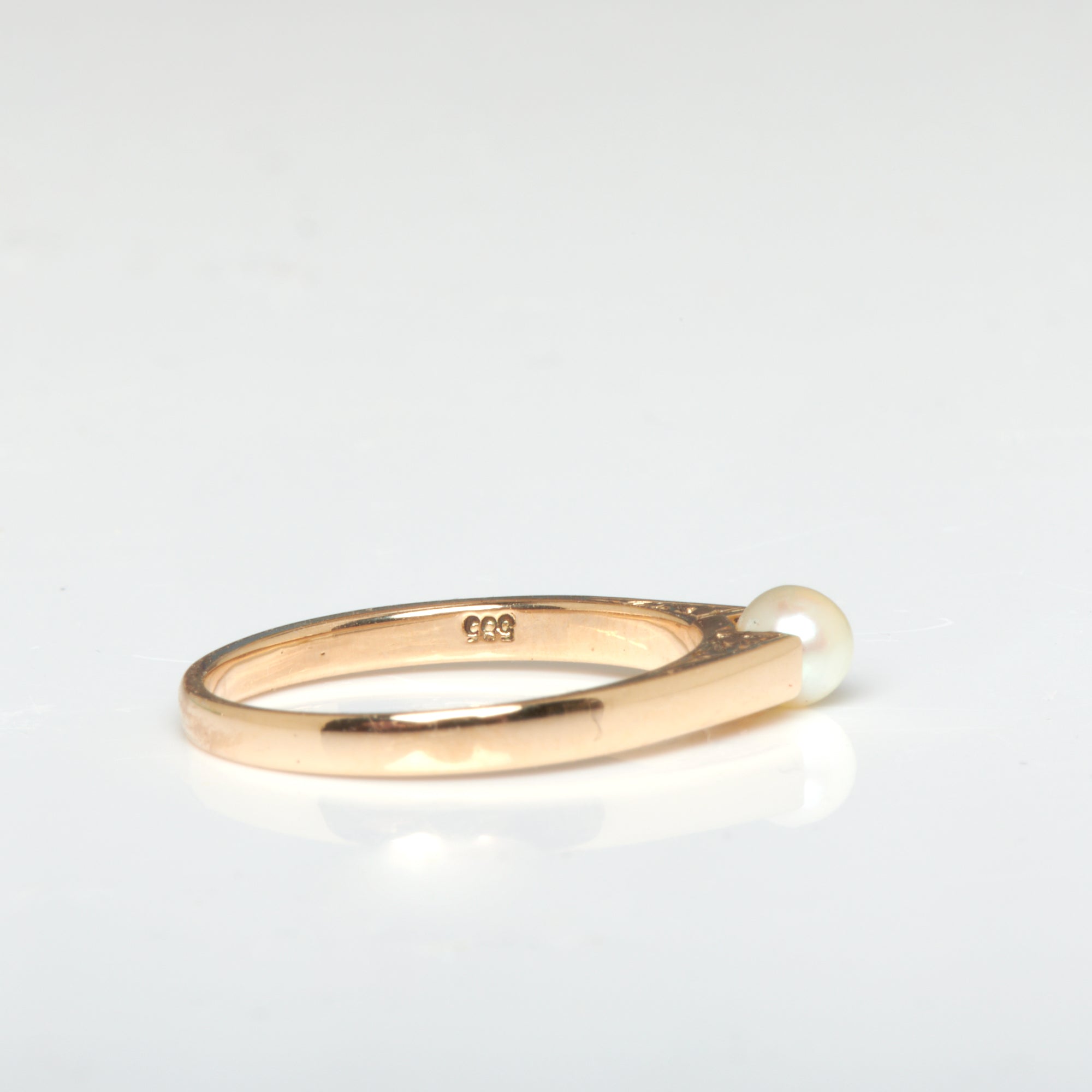 Bei dem Schmuckstück handelt es sich um einen Ring aus 585 Gelbgold mit einer Zuchtperle.