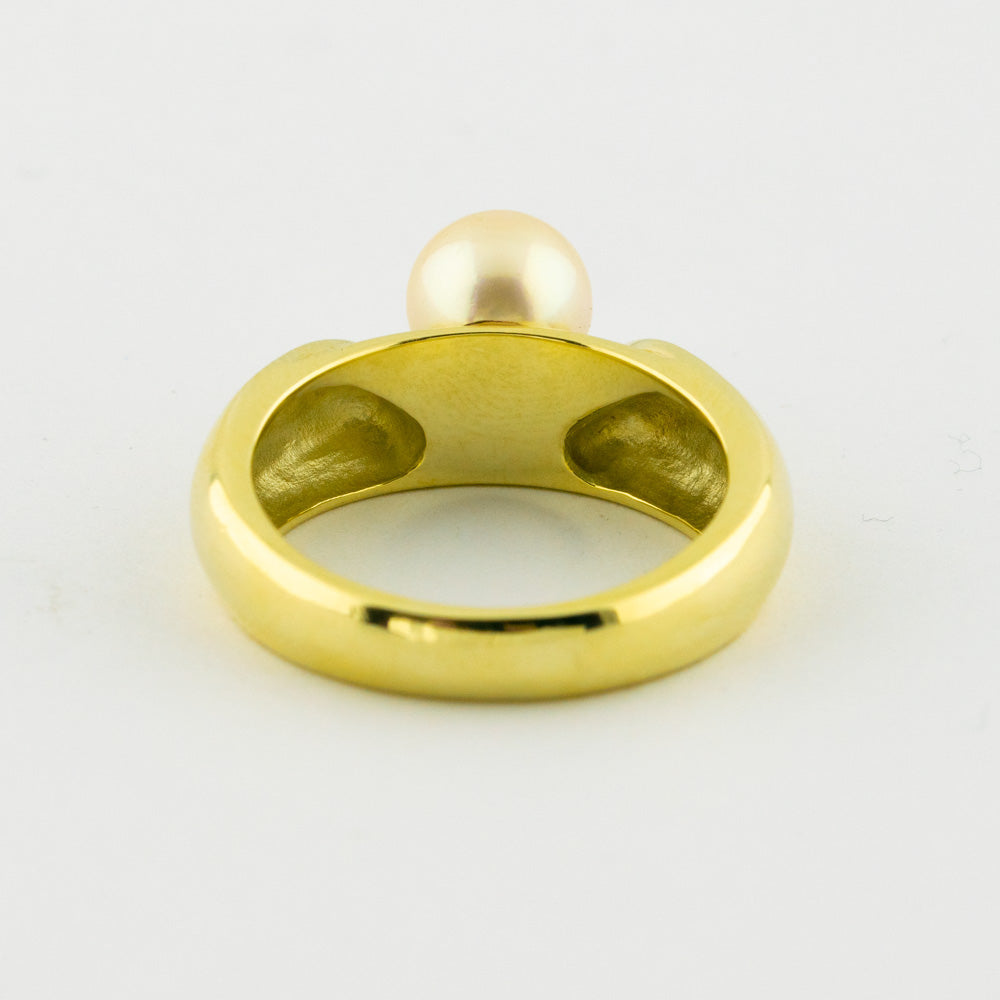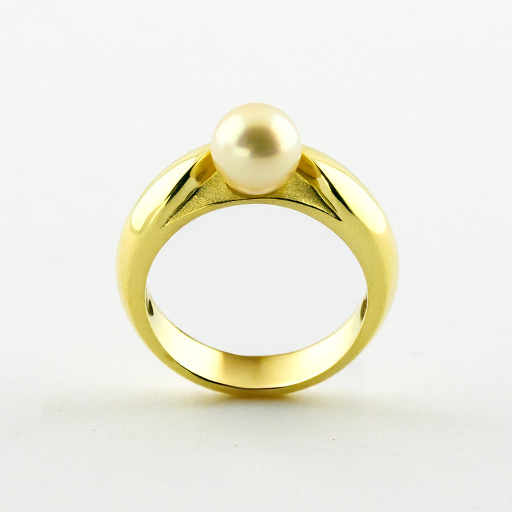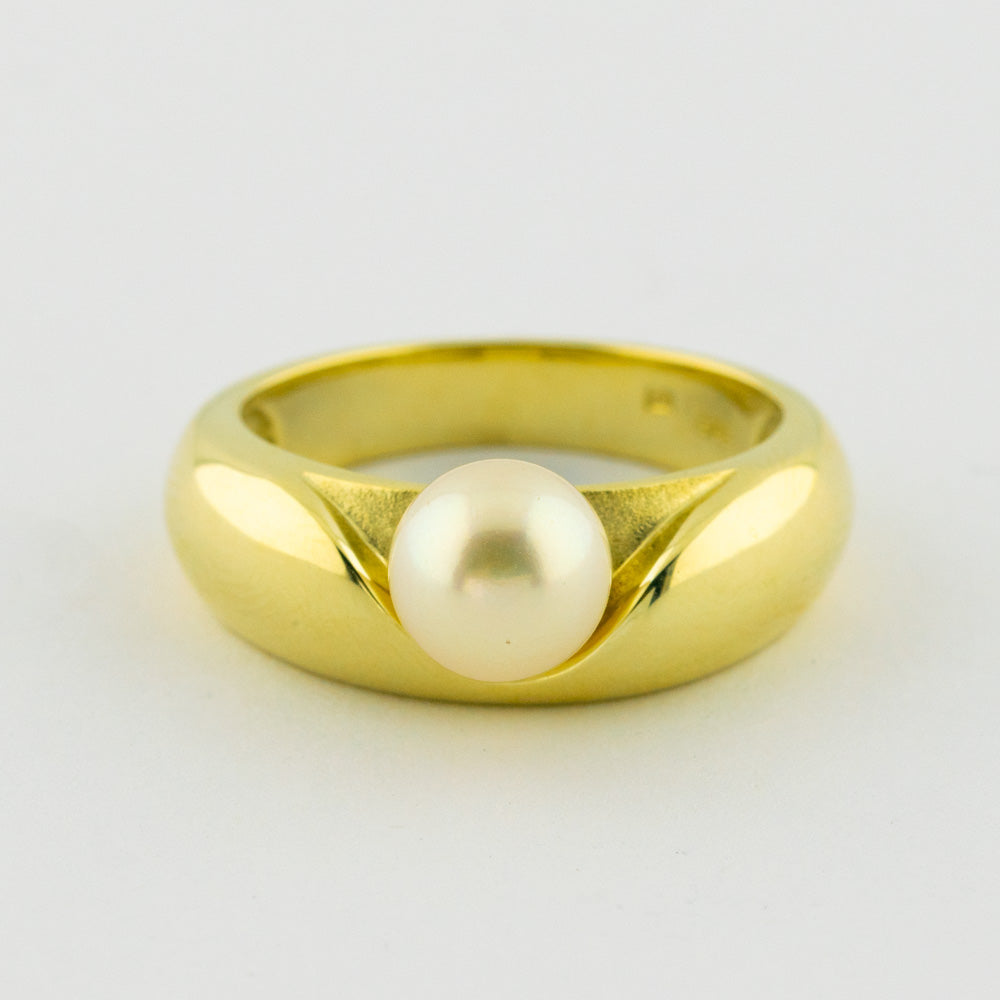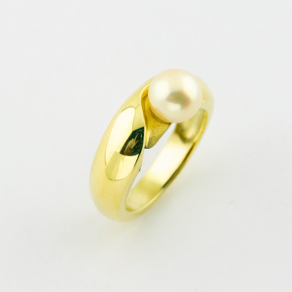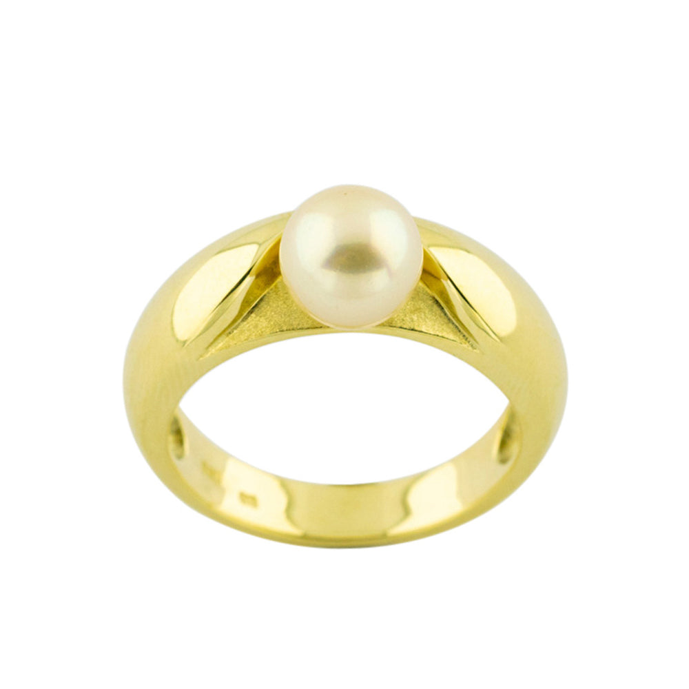 Bei dem Schmuckstück handelt es sich um einen Ring aus 585 Gelbgold mit einer Akoyazuchtperle.