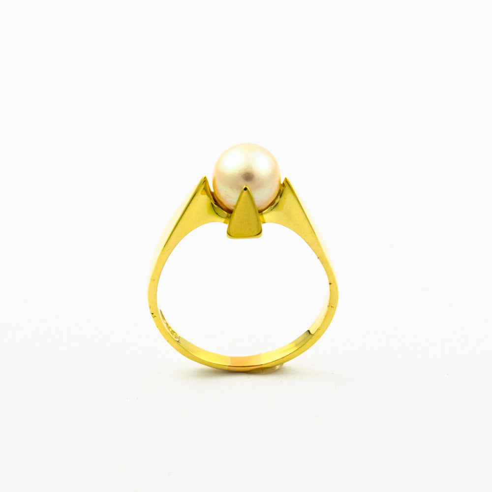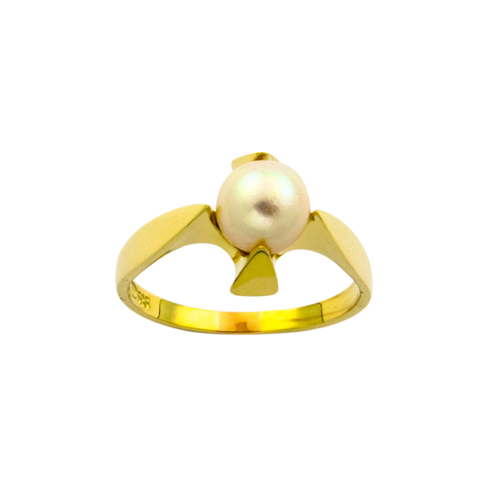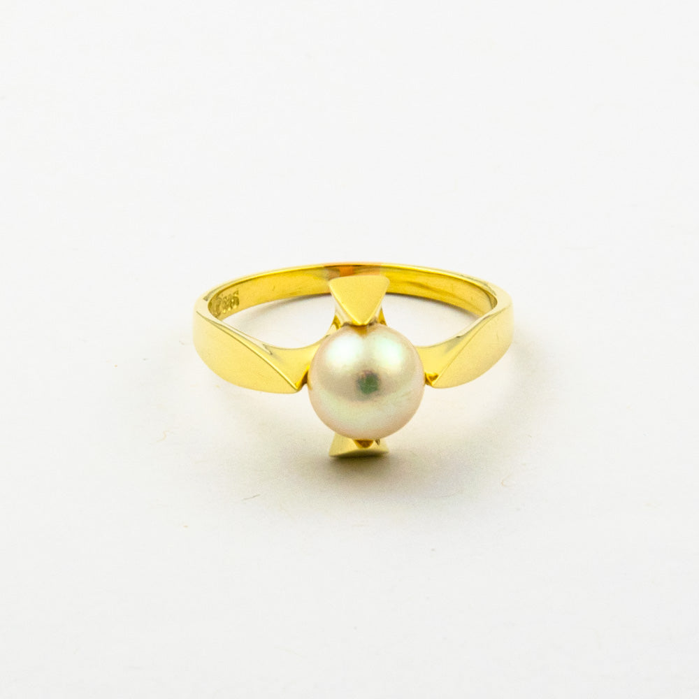 Bei dem Schmuckstück handelt es sich um einen Ring aus 585 Gelbgold mit einer Zuchtperle.