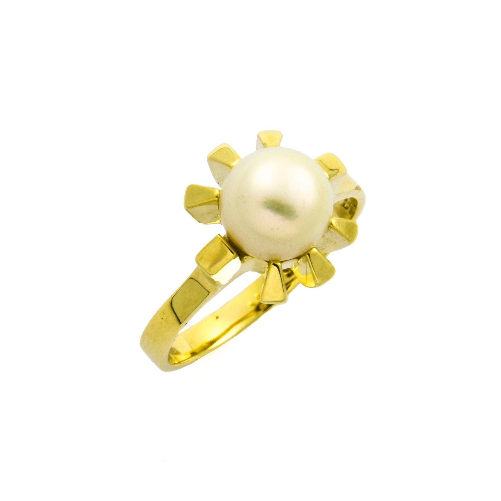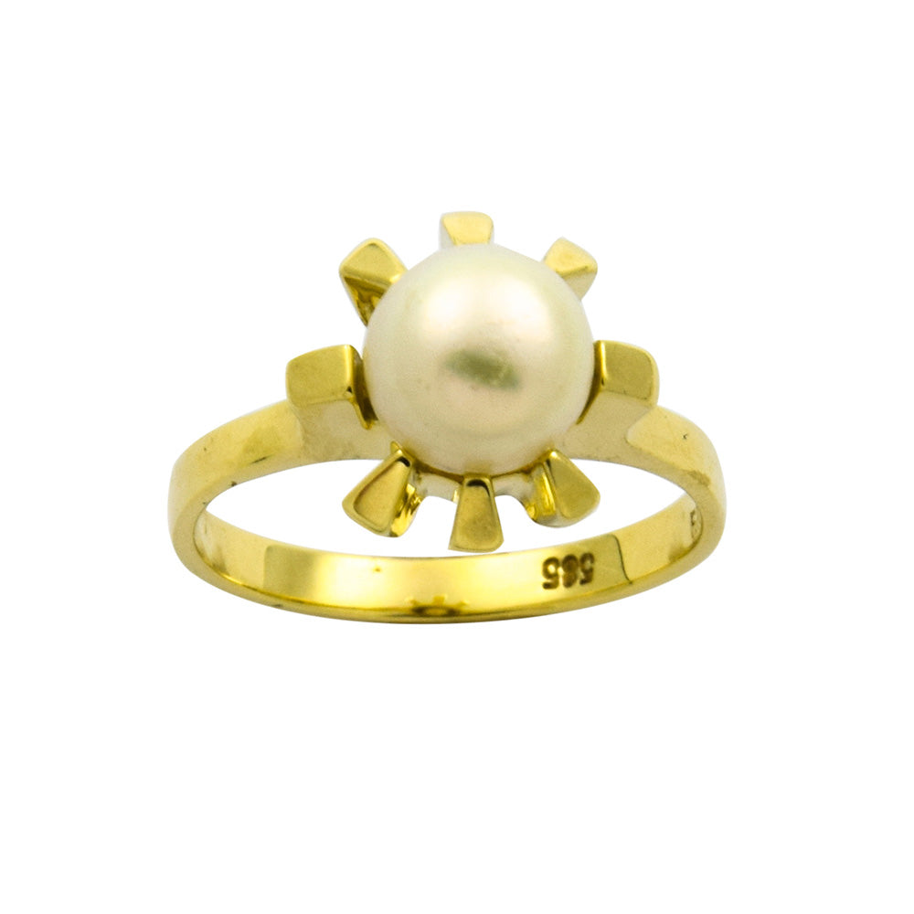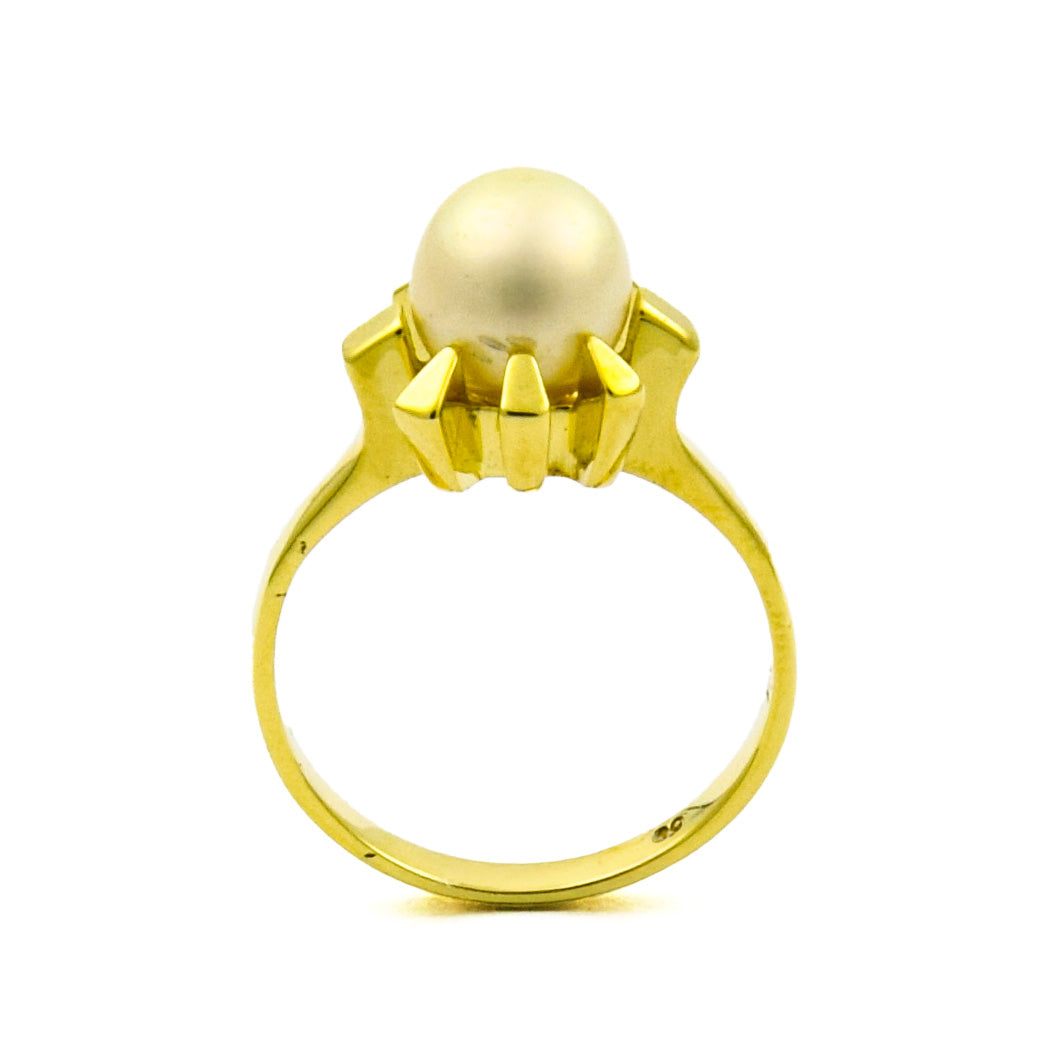 Bei dem Schmuckstück handelt es sich um einen Ring aus 585 Gelbgold mit einer Zuchtperle.