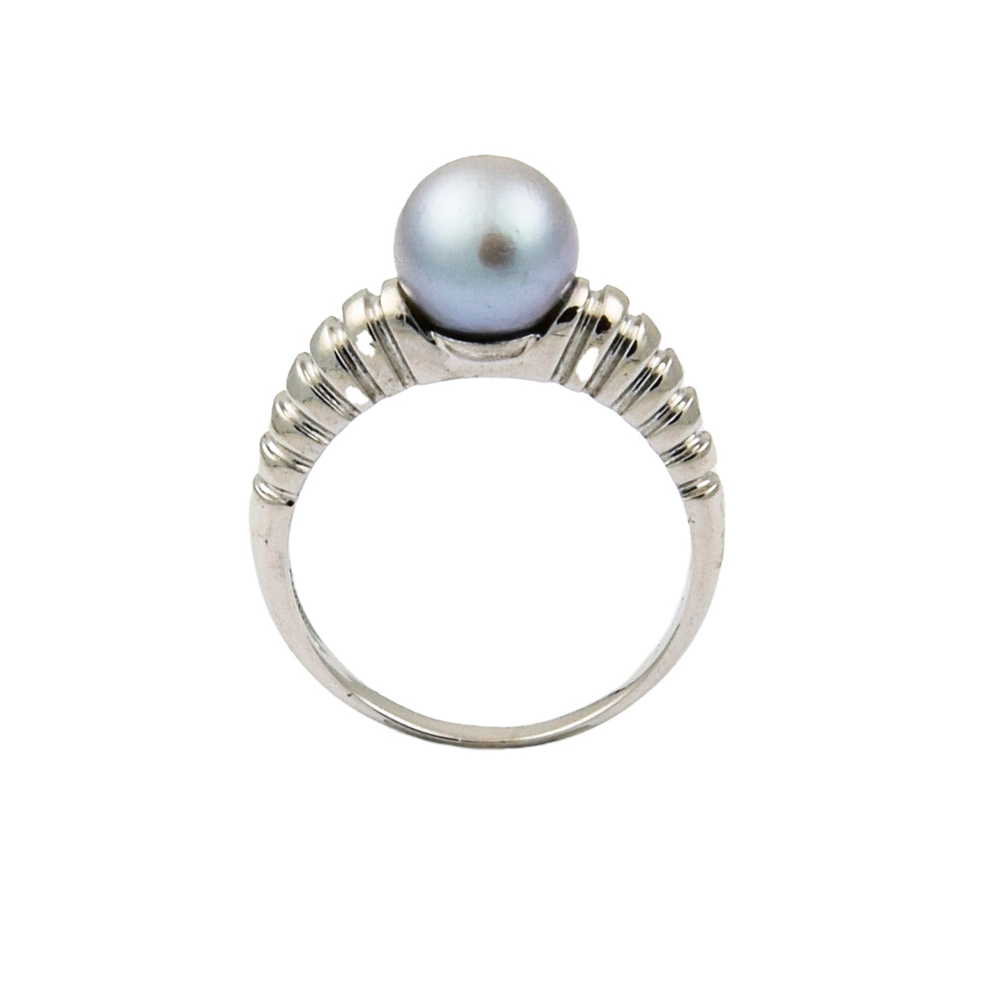 Bei dem Schmuckstück handelt es sich um einen Ring aus 585 Weißgold mit einer Zuchtperle.
