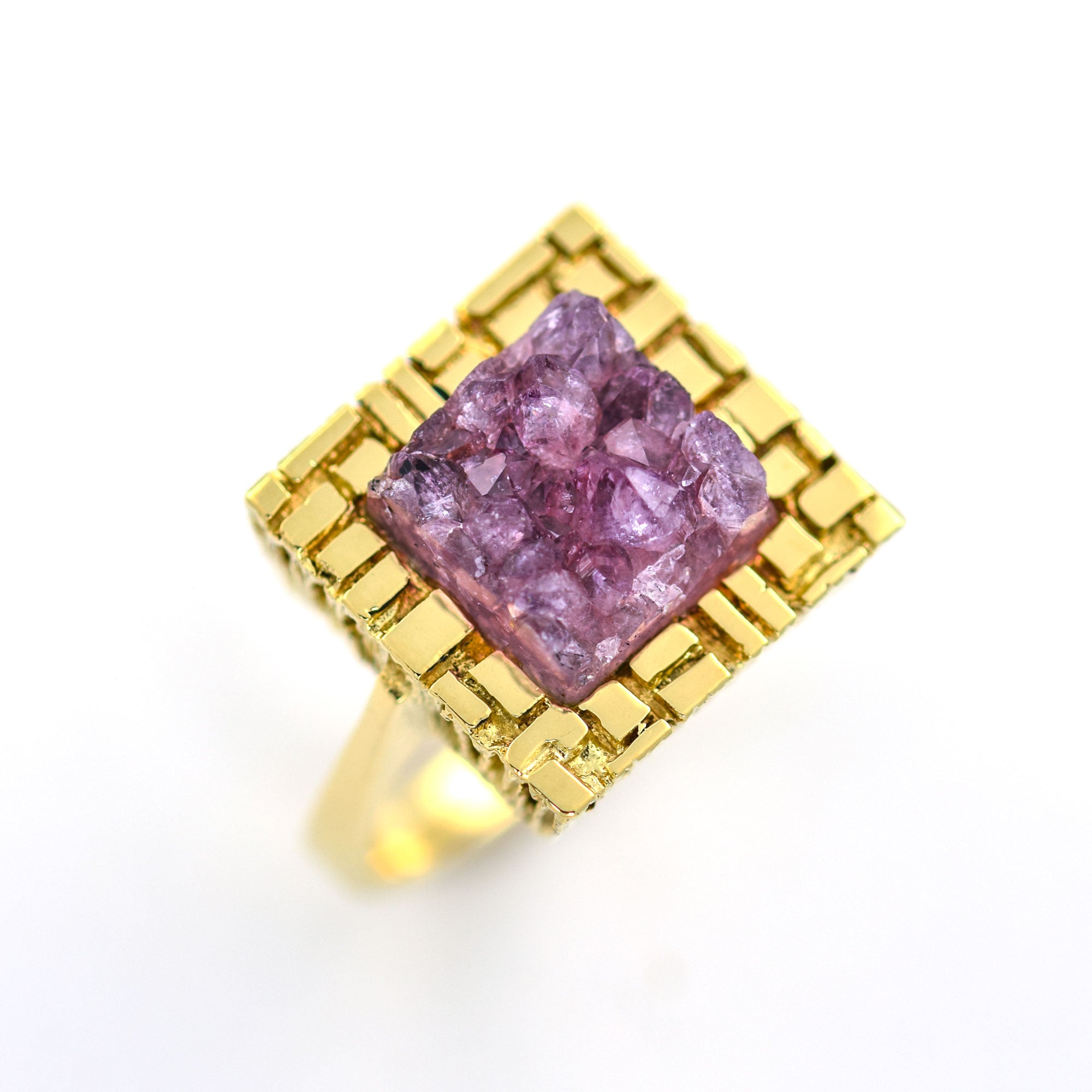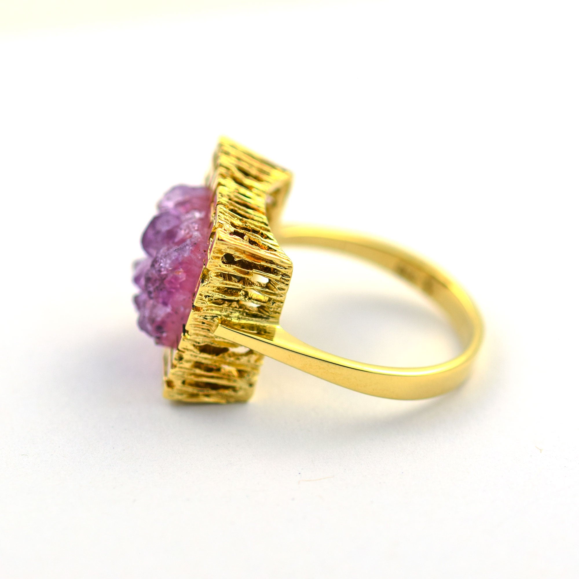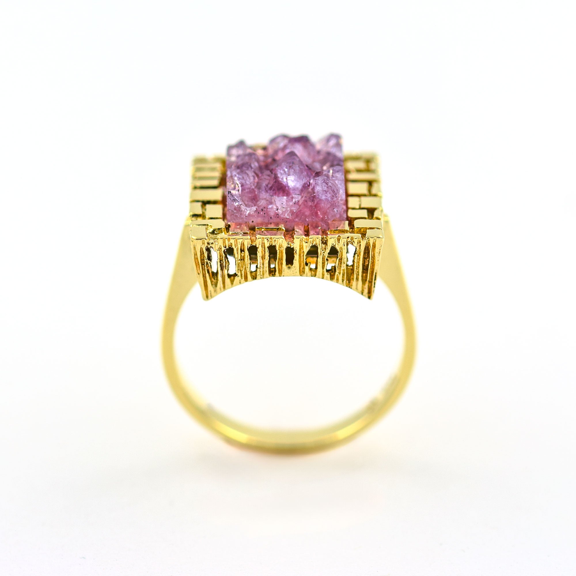 Bei dem Schmuckstück handelt es sich um einen Ring aus 585 Gelbgold mit einem Amethyst.