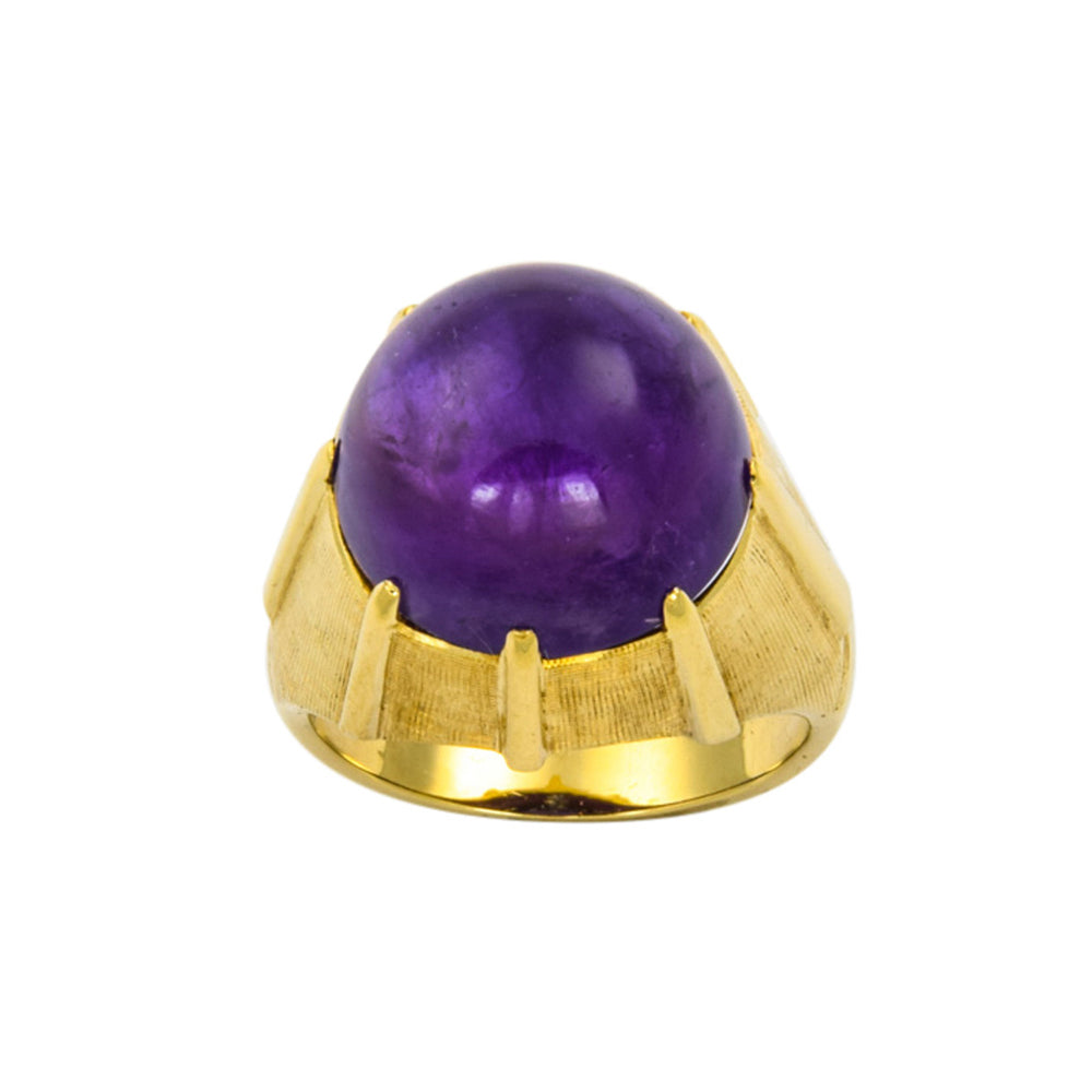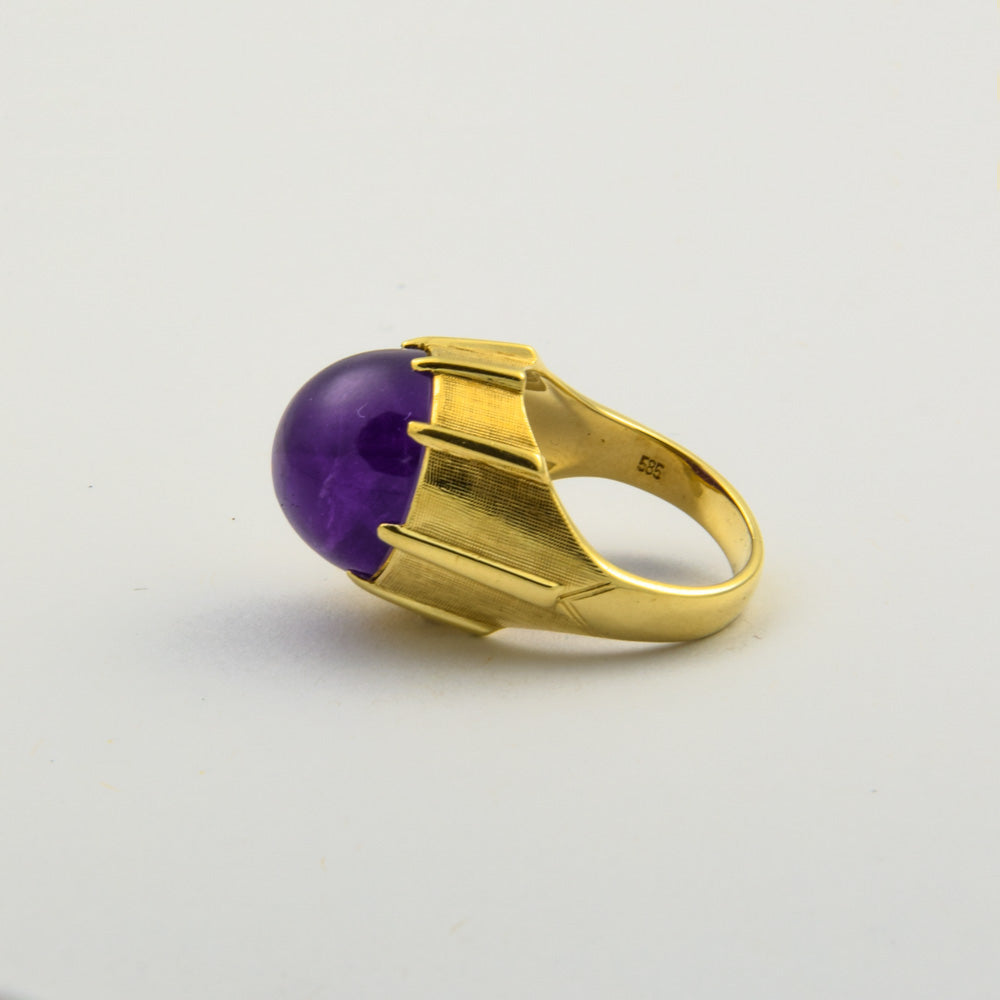 Bei dem Schmuckstück handelt es sich um einen Ring aus 585 Gelbgold mit einem Amethystcabochon.