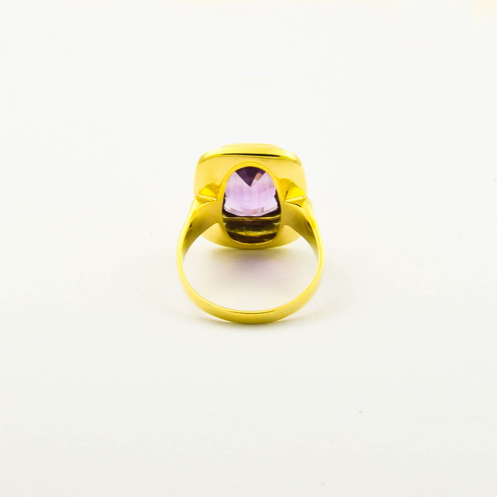 Bei dem Schmuckstück handelt es sich um einen Ring aus 585 Gelbgold mit einem Amethyst.