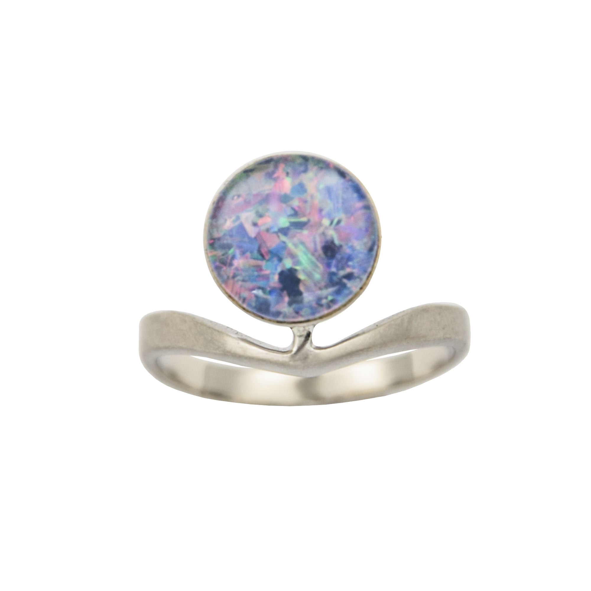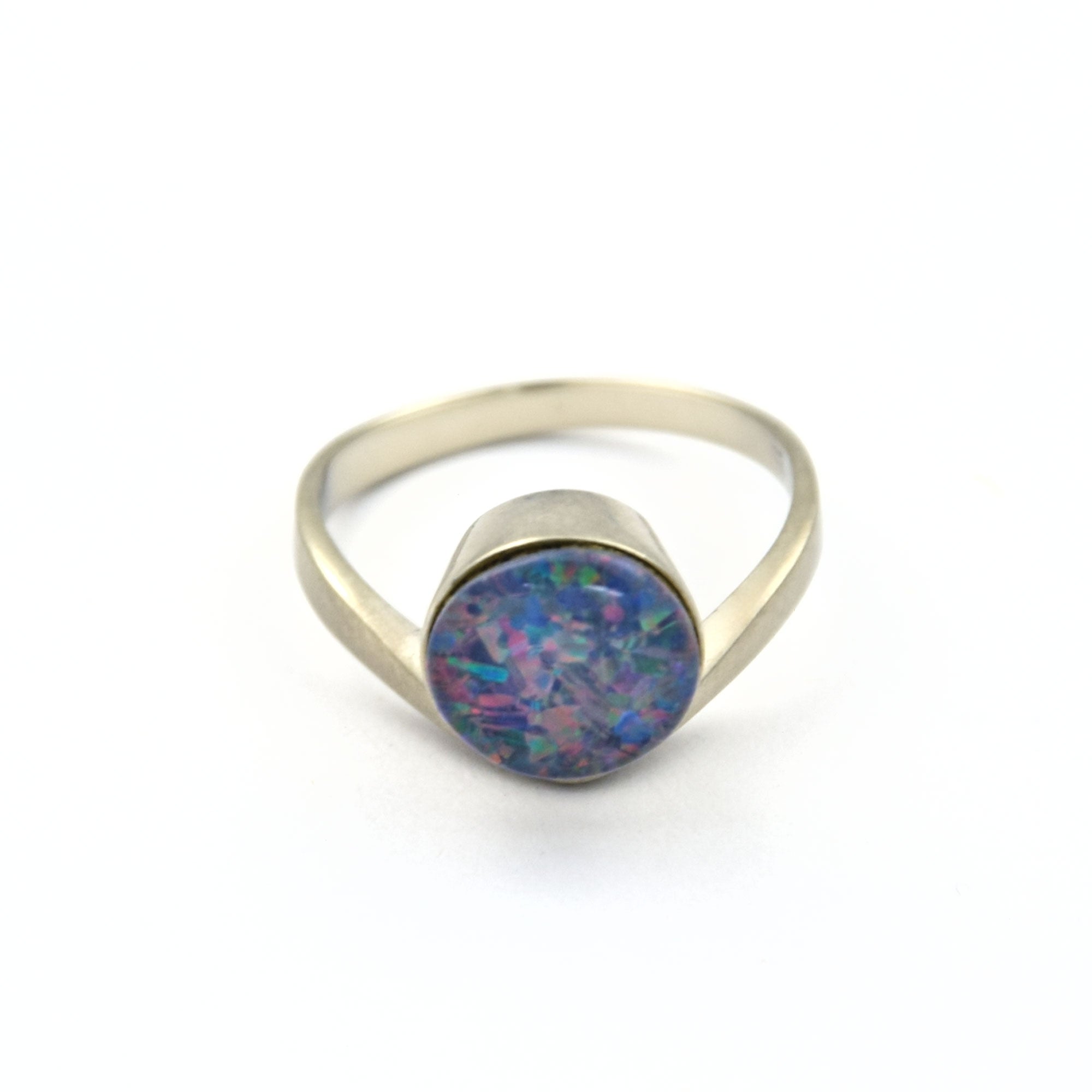 Bei dem Schmuckstück handelt es sich um einen Ring aus 585 Weißgold mit einem Opaltriplette.