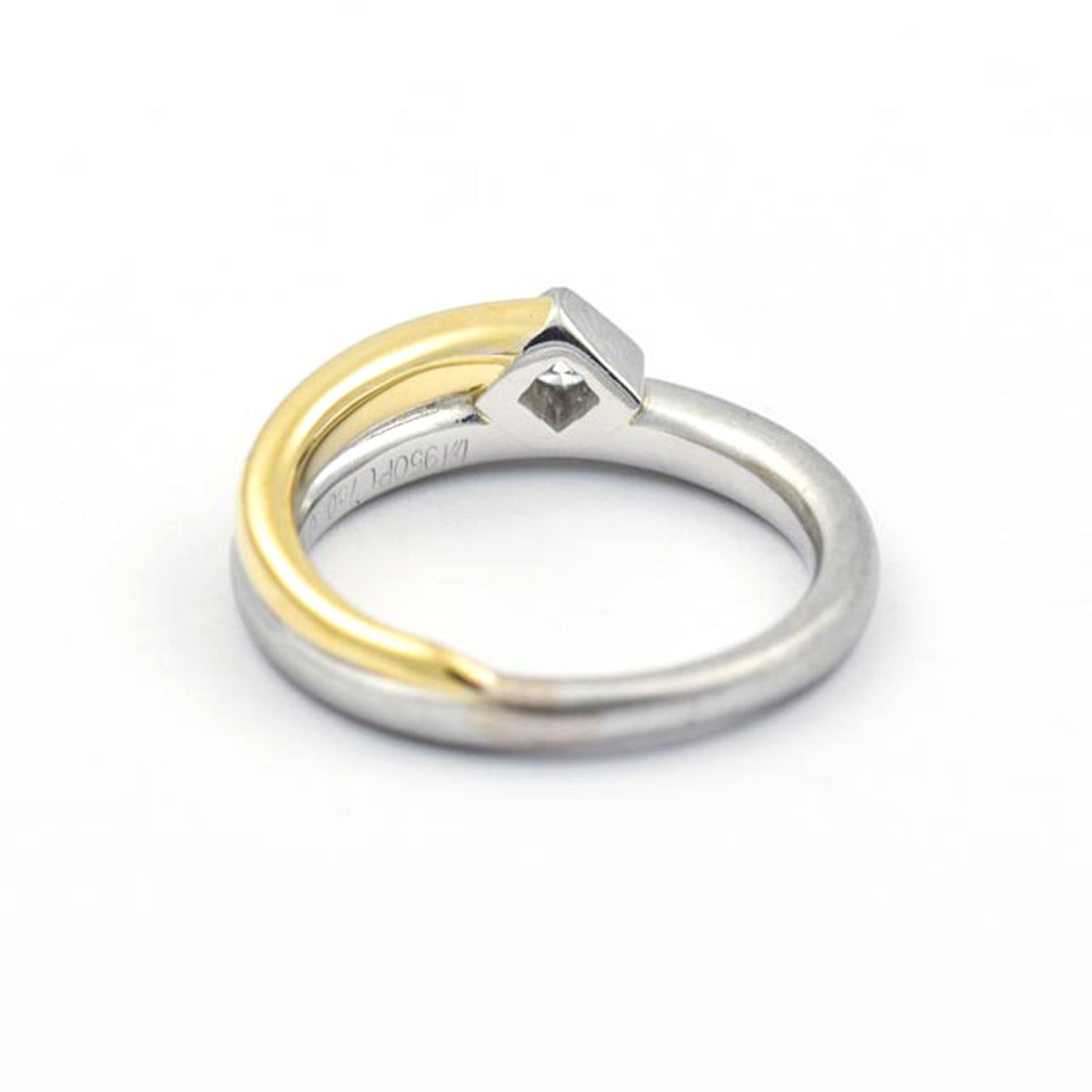 Bei dem Schmuckstück handelt es sich um einen Ring der Marke Meister aus 950 Platin/750 Gelbgold mit einem Brillanten von ca. 0,17 ct in der Qualität feines Weiß mit sehr kleinen Einschlüssen (TW/vs).