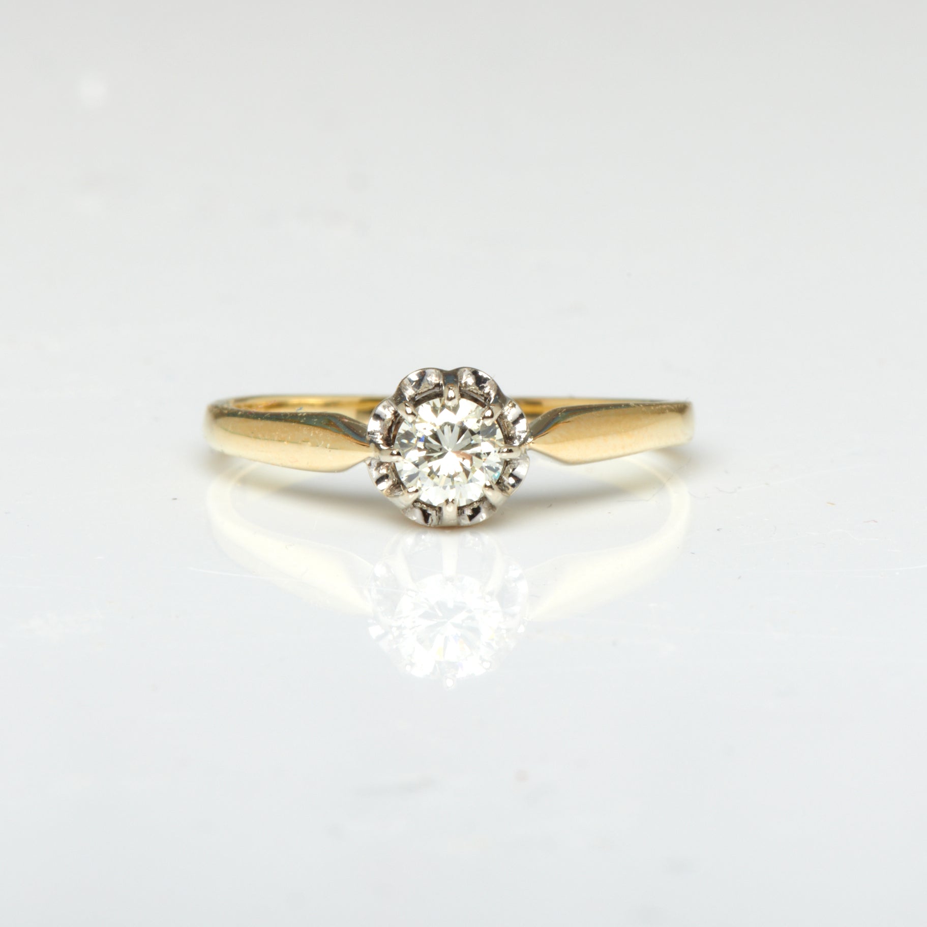 Solitärring aus Gelb- und Weißgold mit Brillant
