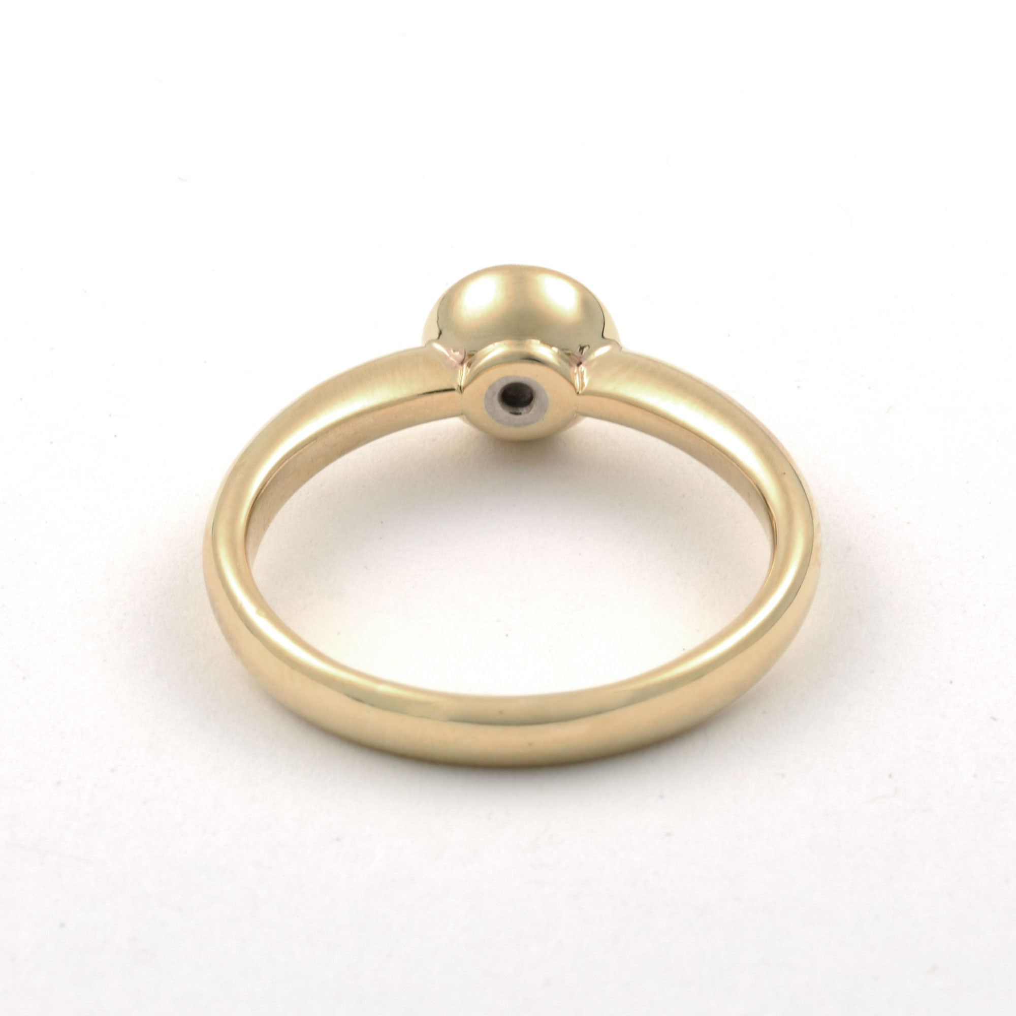 Bei dem Schmuckstück handelt es sich um einen Ring us 750 Gelb- und Weißgold mit einem Brillanten von ca. 0,25 ct in der Qualität Weiß mit kleinen Einschlüssen (W/si).